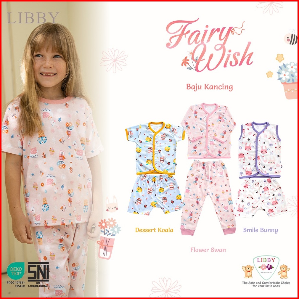 Libby Setelan Piyama Baju Kancing Motif Anak Perempuan 1 Stel Heart Sorbet Fairy Wish
