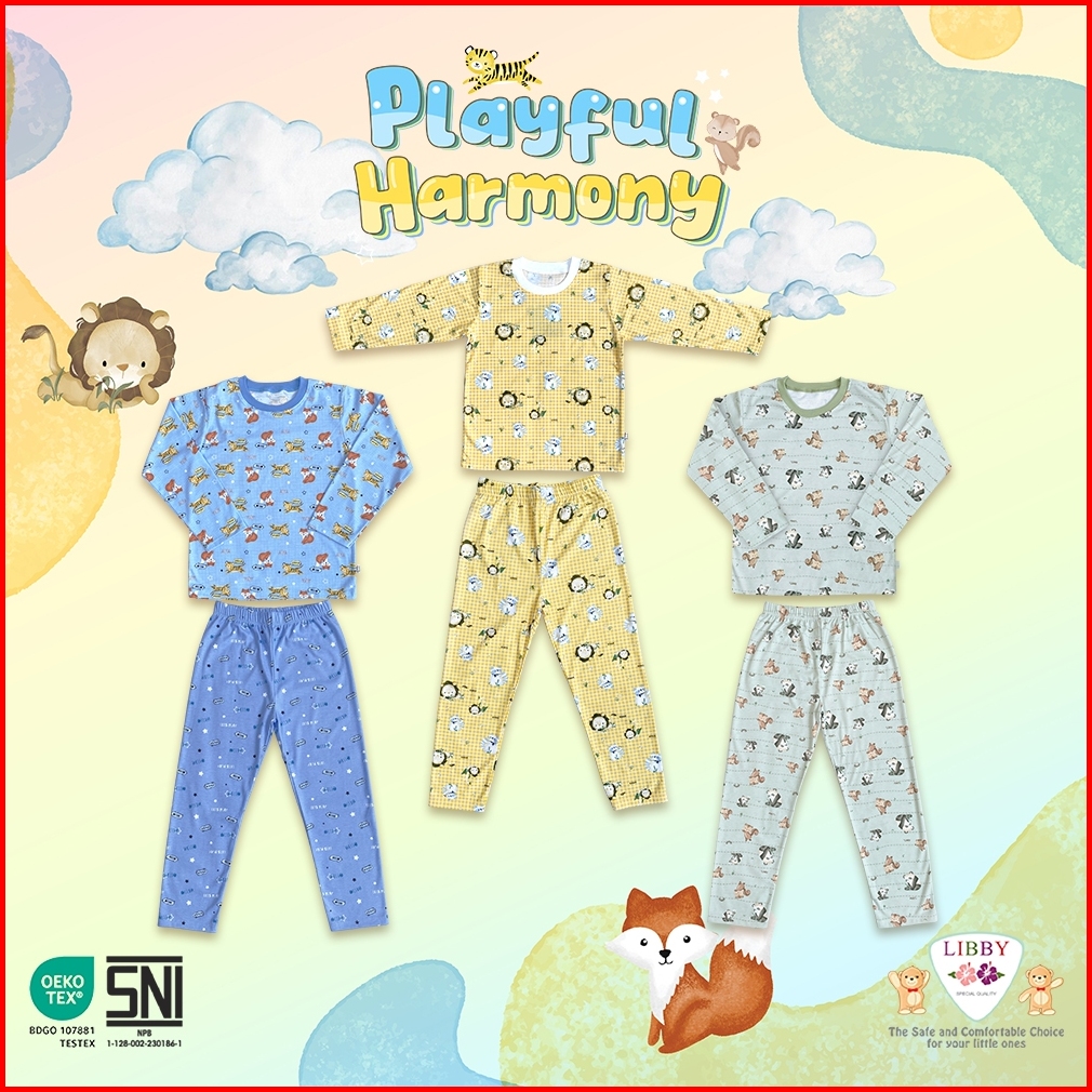 Libby Setelan Piyama Anak Oblong Panjang Laki - Laki Perempuan Motif Unisex 1 Stel Fresh Dream Playful Harmony Lively Vi