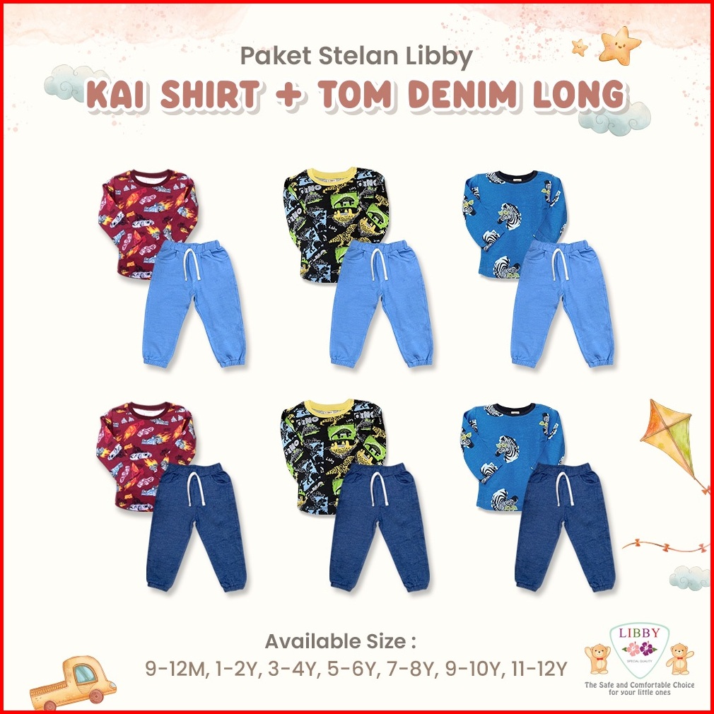 Libby Setelan Anak Laki Laki Kaos Anak Laki Laki Celana Panjang Denim Anak Laki Laki Usia 9 Bulan - 12 Tahun 1 Set 2 Ite