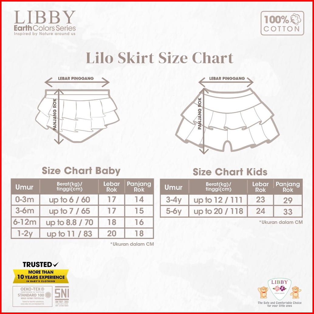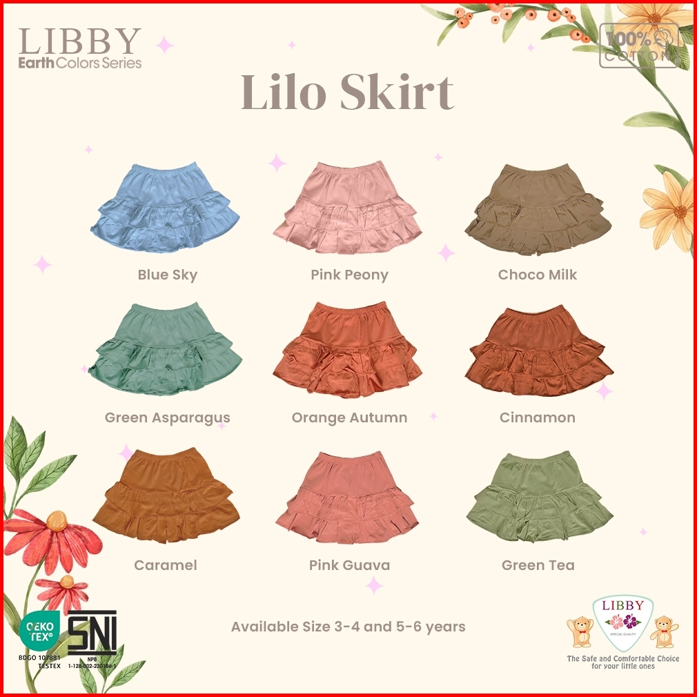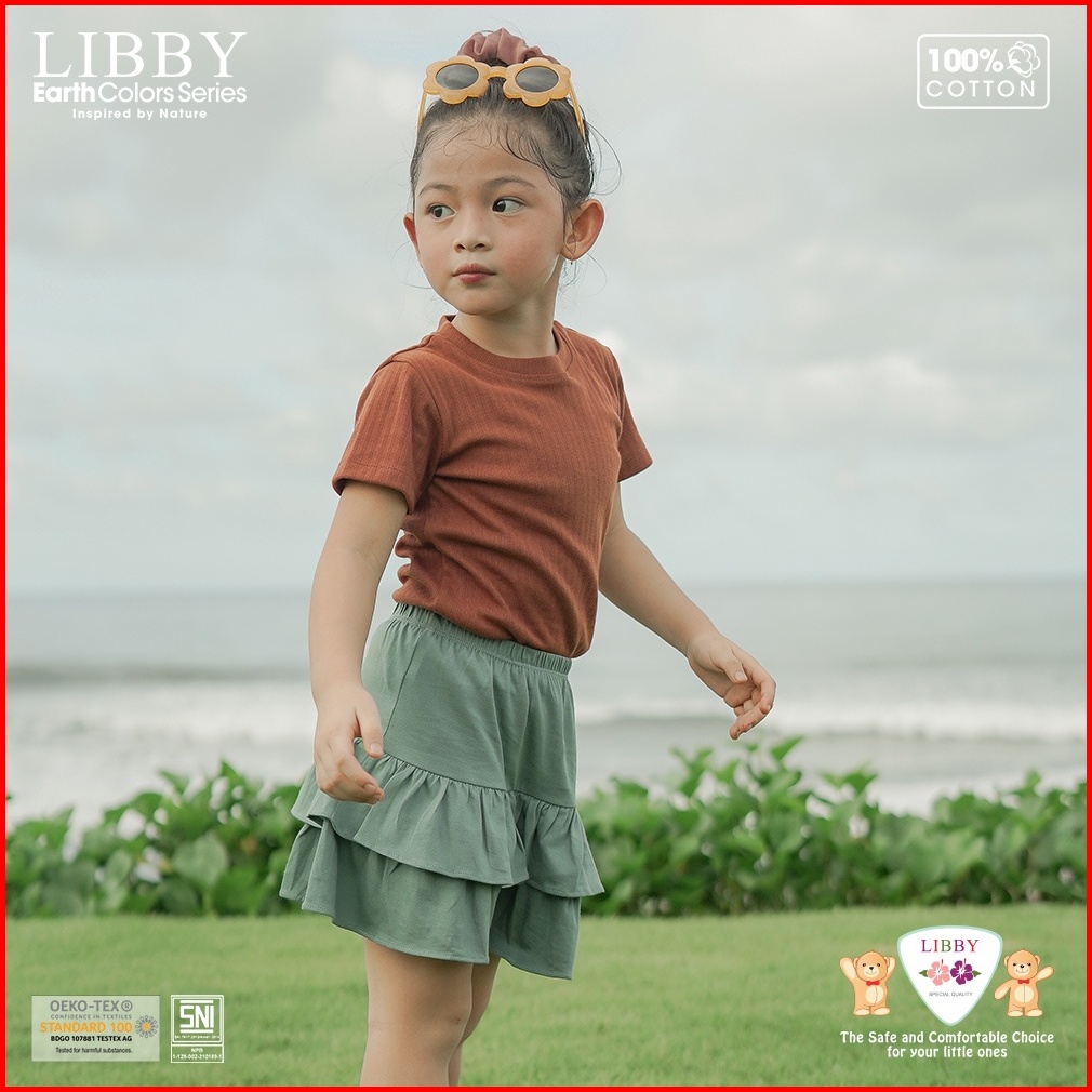 Libby Rok Anak Perempuan Skort Ruffle Polos 3-6thn Earth Lilo Skirt 1pcs Pack