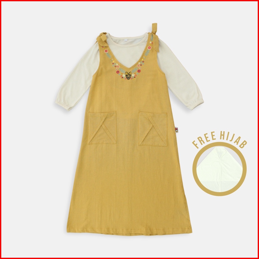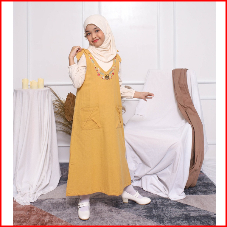 Maxi Overall Dress Panjang Anak Kuning Daisy Flower Power