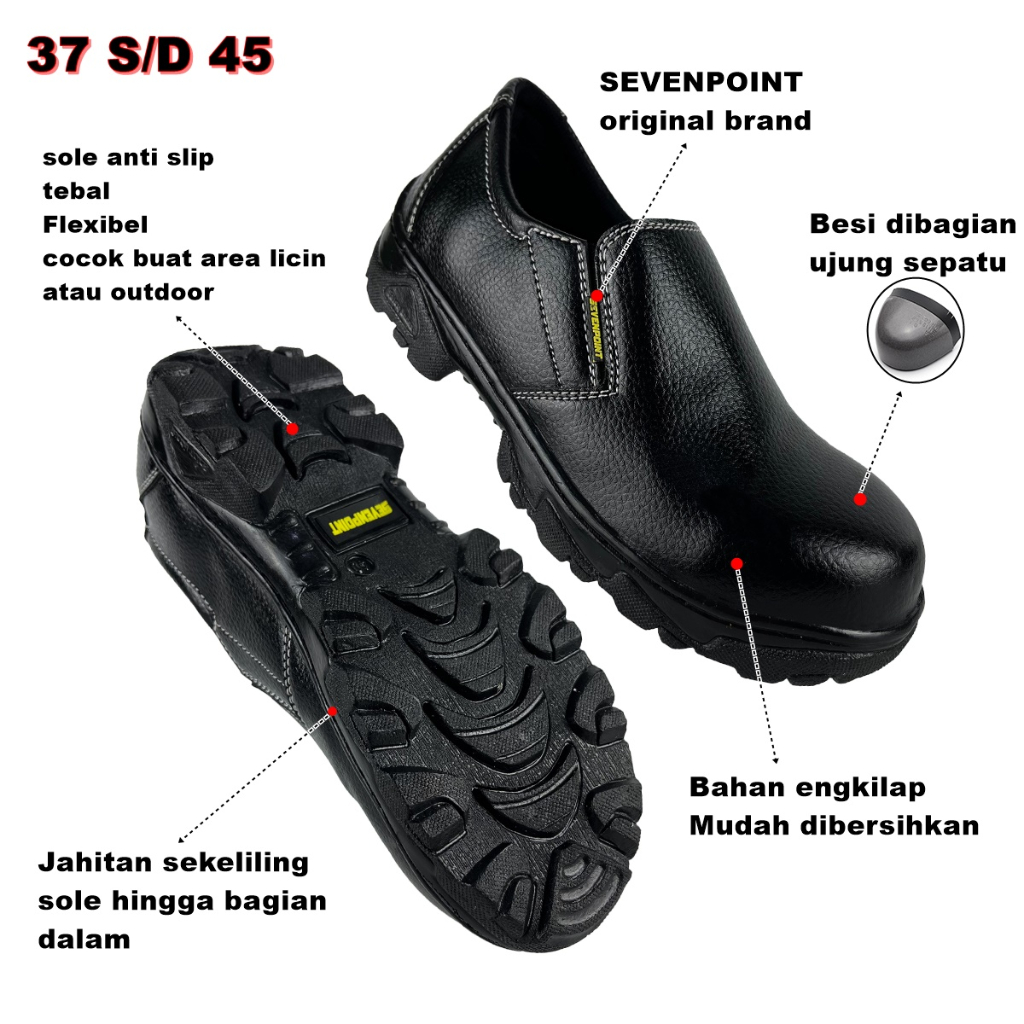 Sepatu Safety Slip On Pria Wanita Sefti Kitchen Septi Shoes Ujung besi Septy Slop Savety Selop Kerja Lapangan Proyek 03