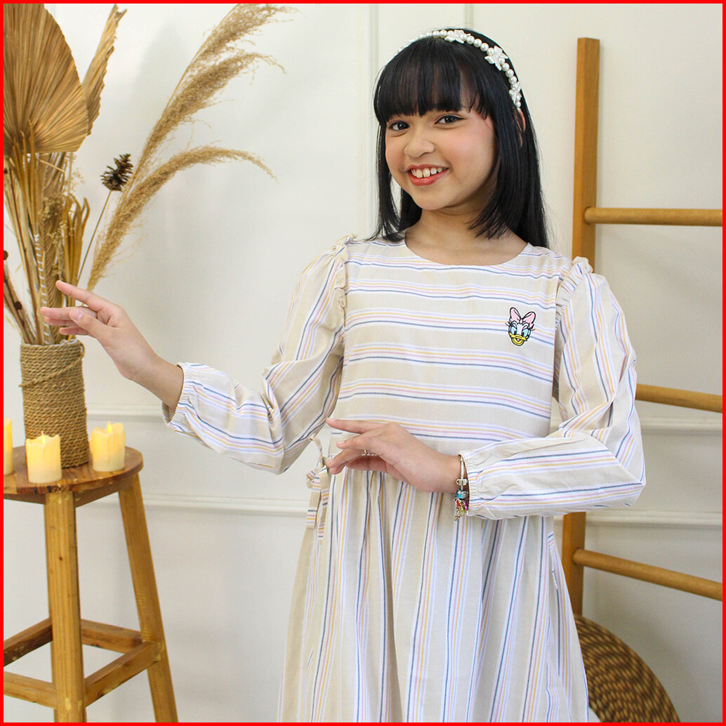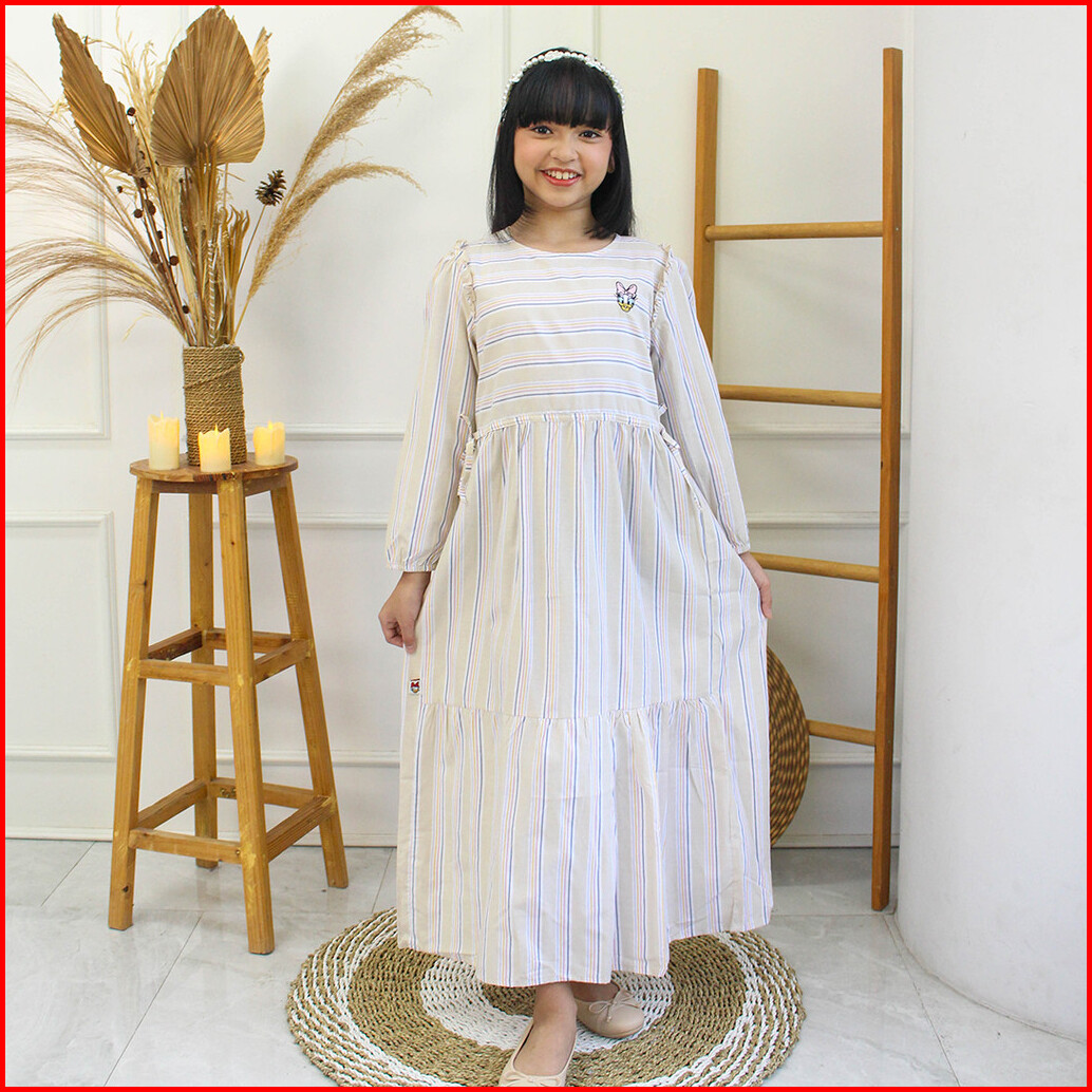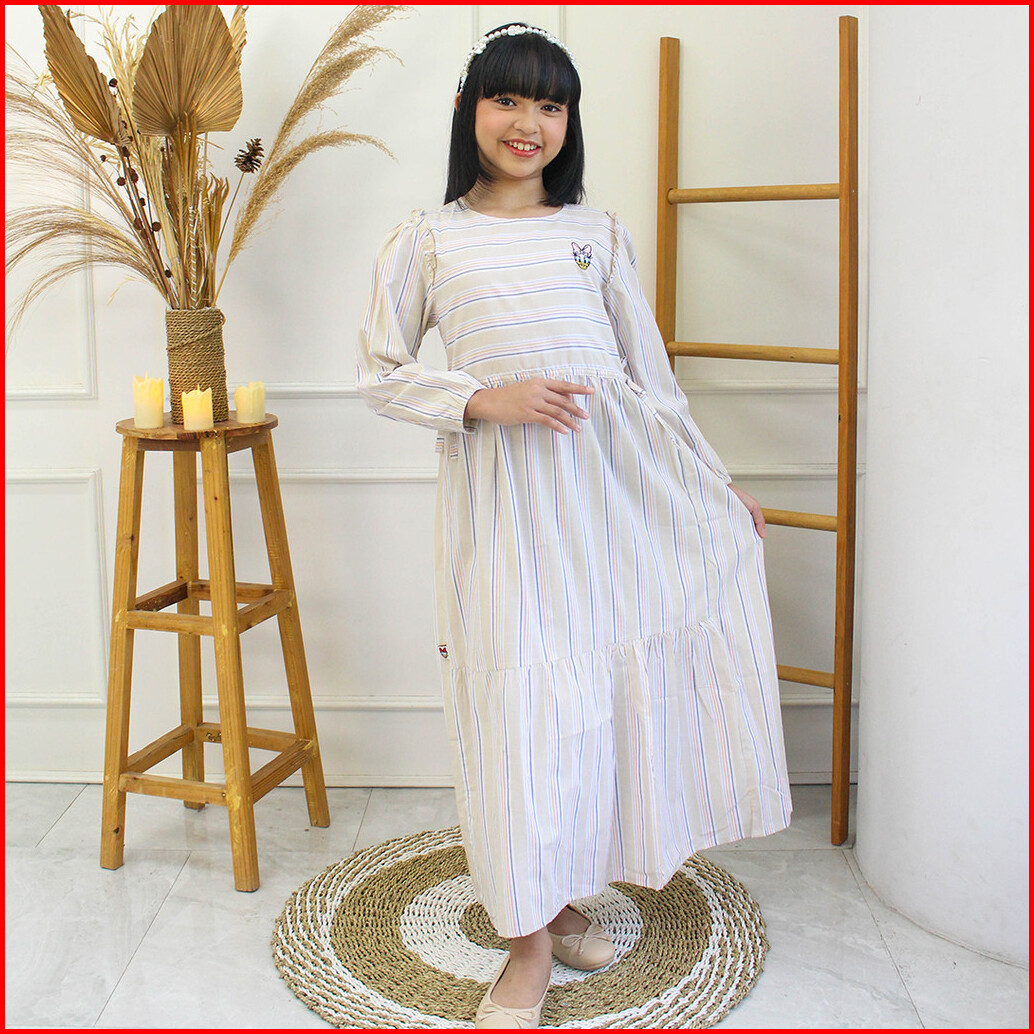 Shirt Dress Maxi Cotton Ghamis Dress Katun Anak Cream Daisy Raya