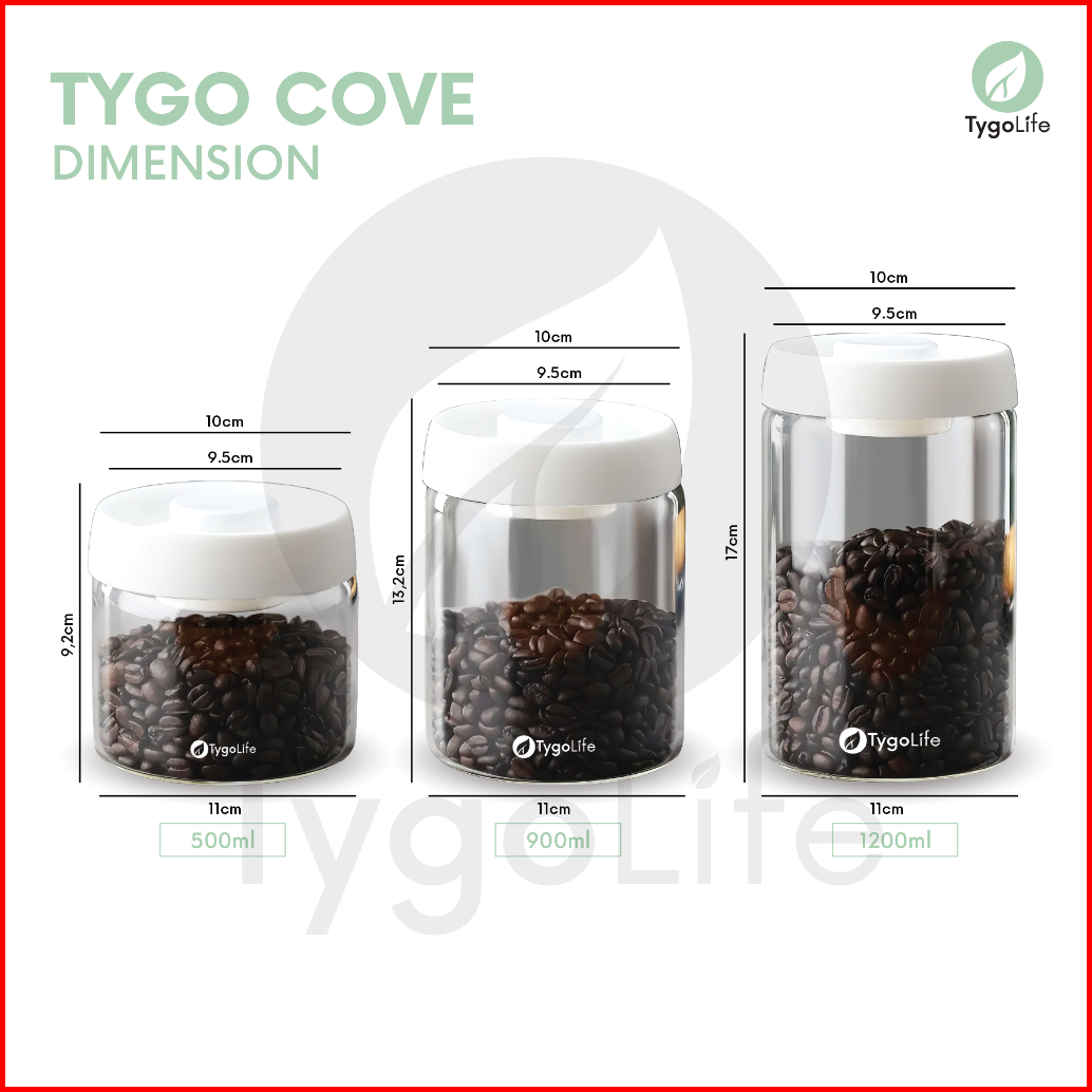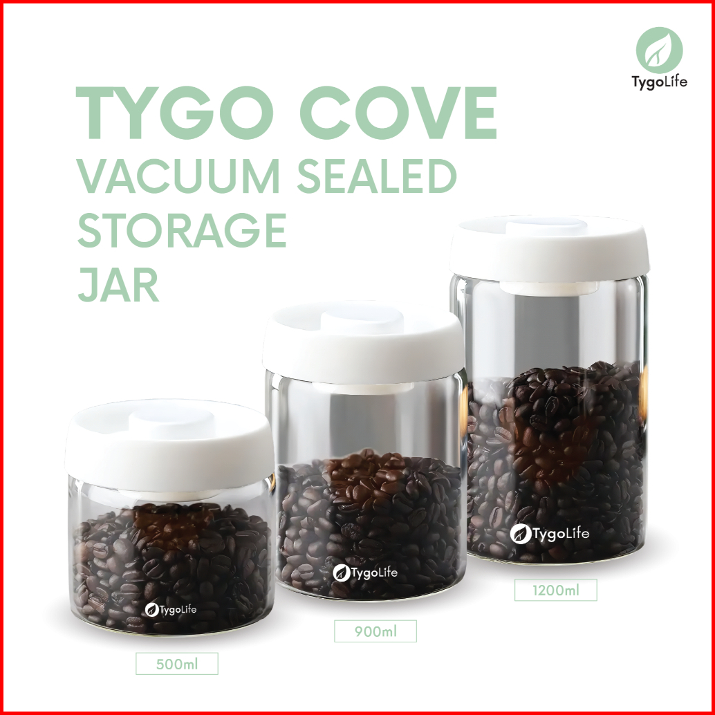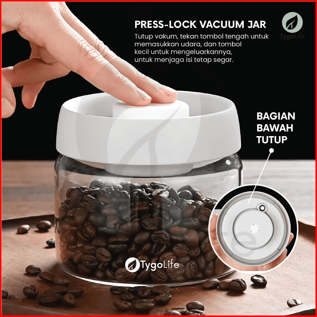 Tygo Cove Vacuum Sealed Jar Toples Kaca Vakum Biji Kopi Teh Bumbu Dapur Anti Udara Coffee Beans Storage Lid 500 900 1200
