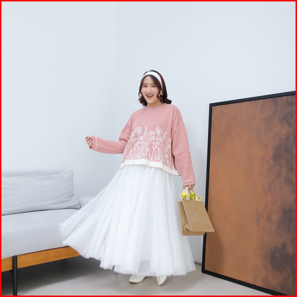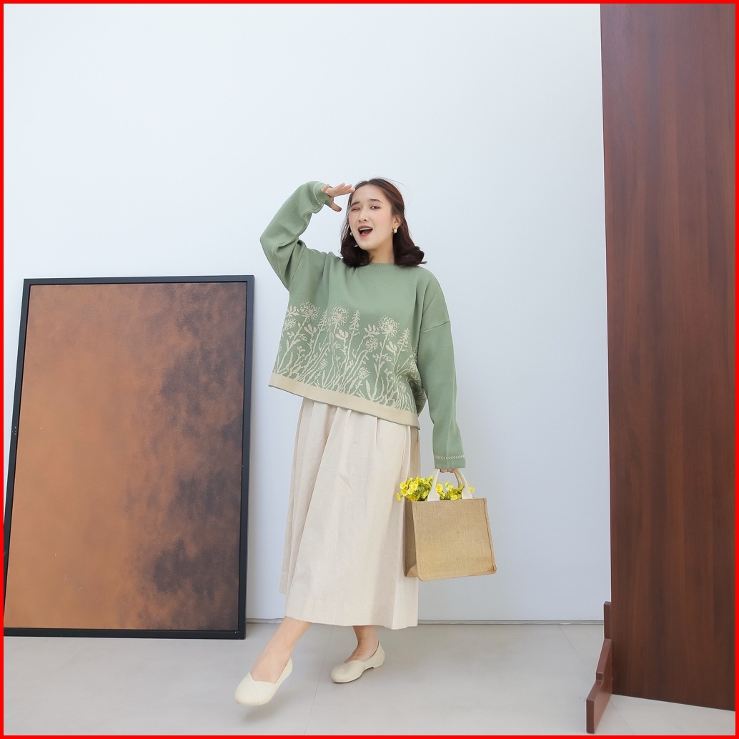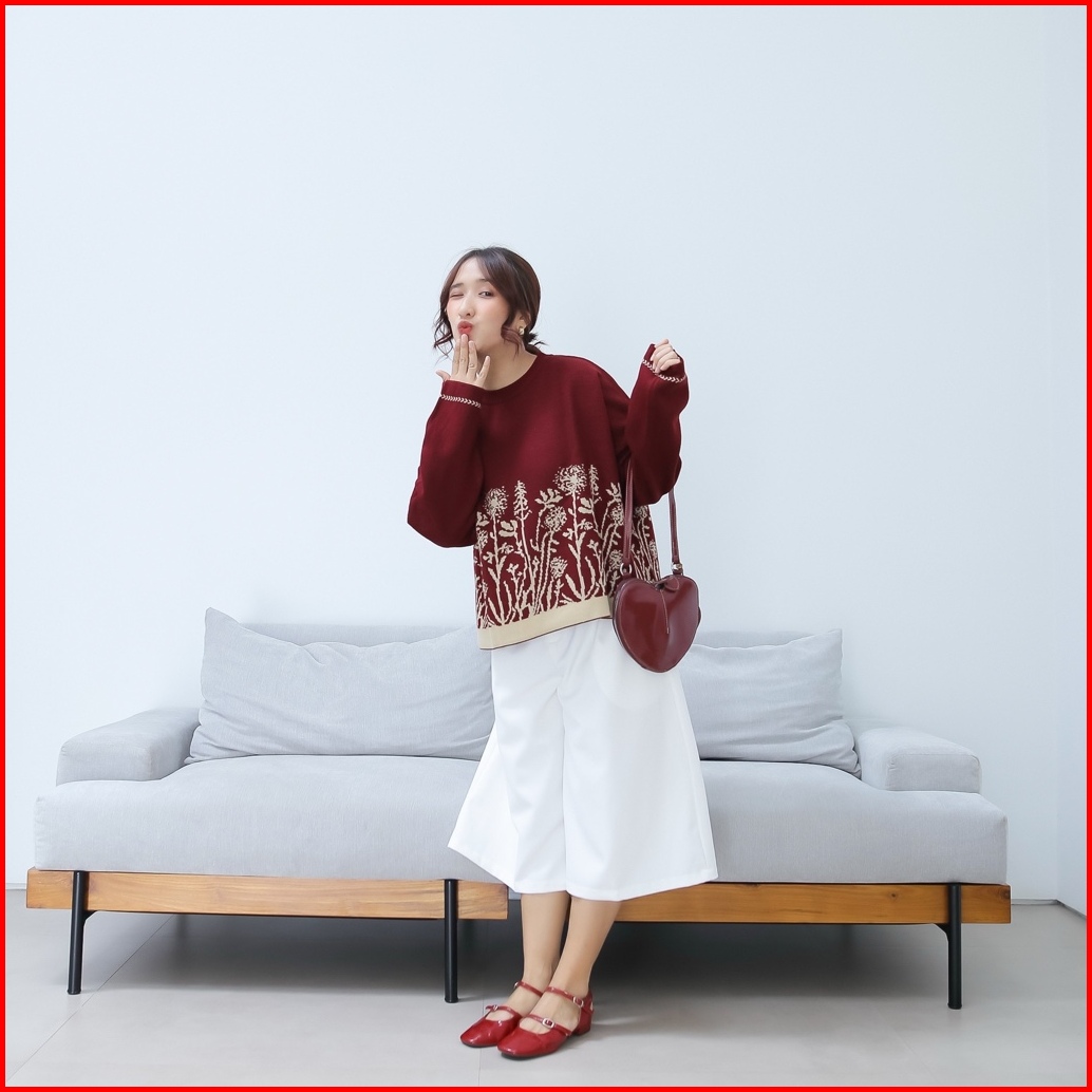 Midun.project - Sellina Atasan Rajut Wanita Jumbo Motif Bunga Crop Top