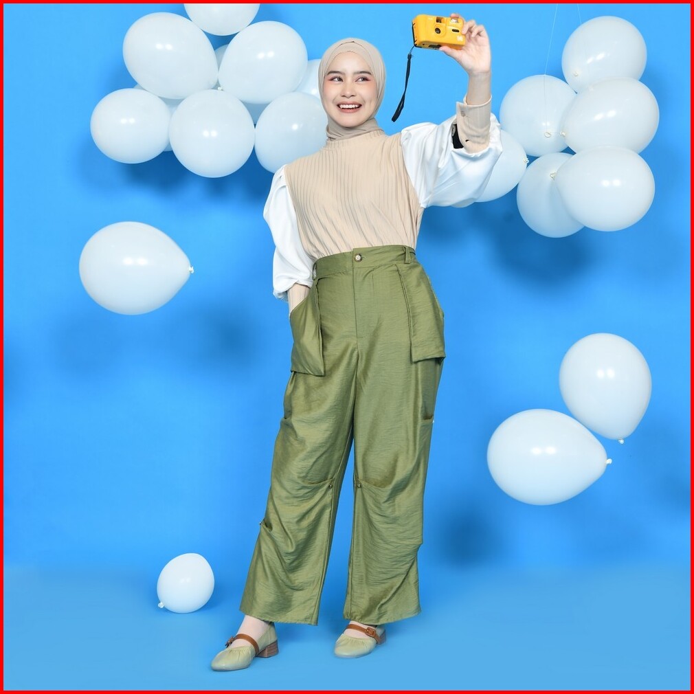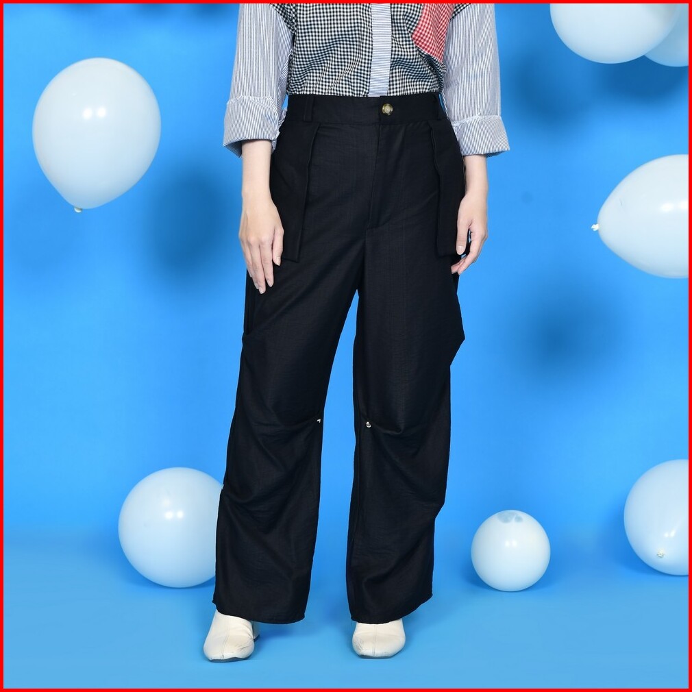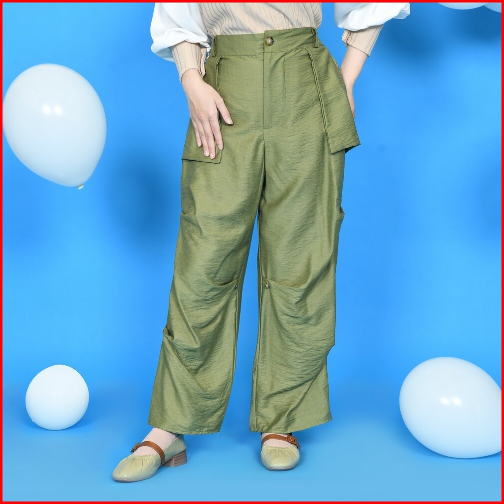 Mybamus Button Up Pants Celana Cargo Wanita Kekinian Celana Bahan Celana Panjang