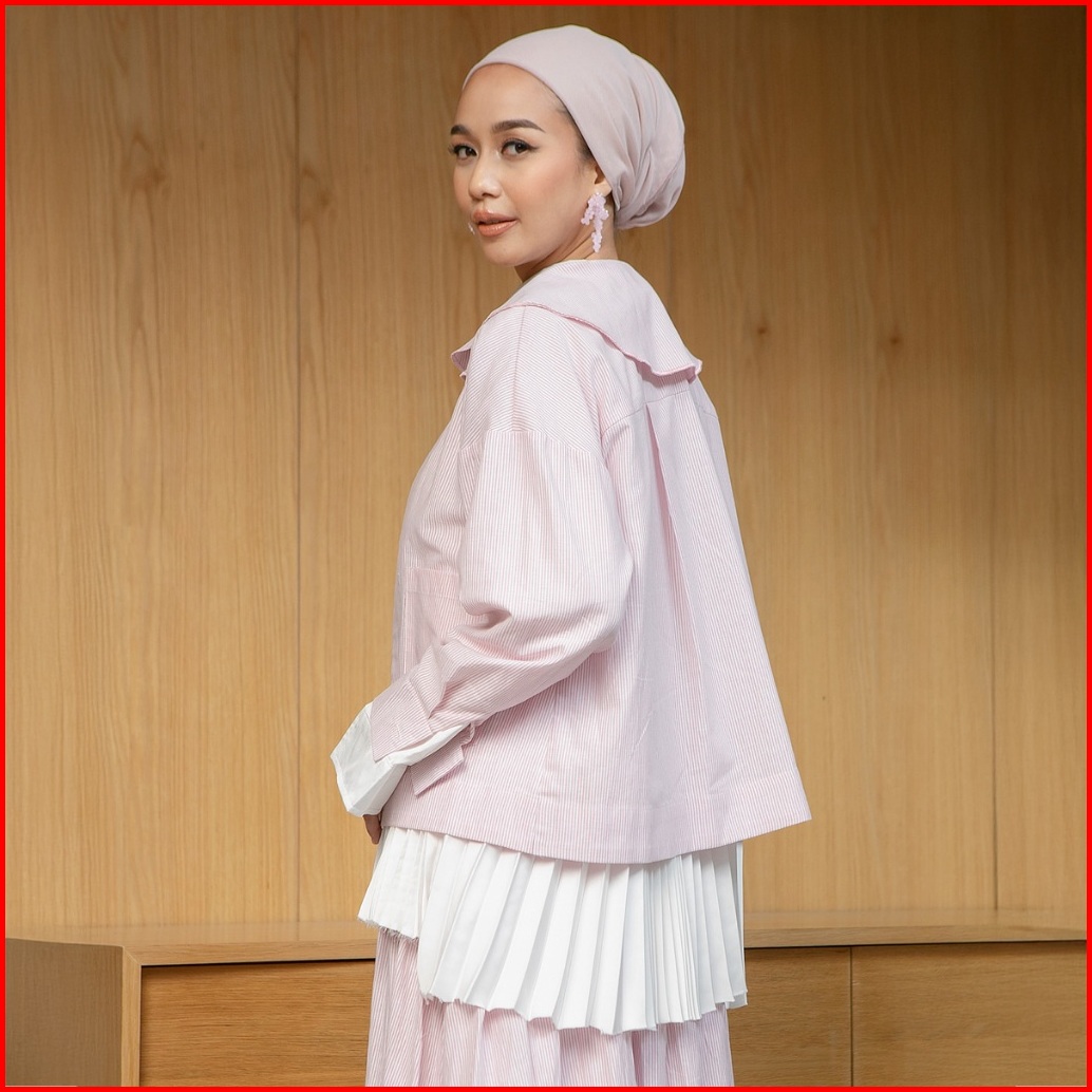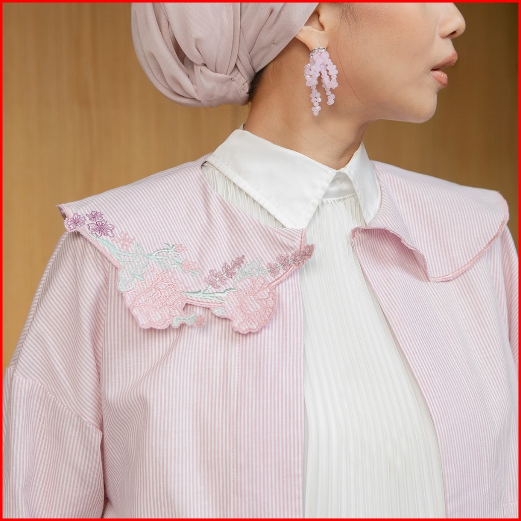 Hijabchic Goya Pale Pink Outerwear - Outer Stripe Katun Premium Kerah Bordir Feminin Mewah