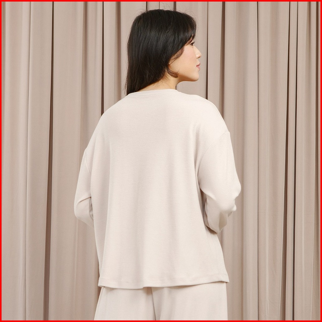 Hijabchic Lona Top - Atasan Knit Lembut Tali Serut Adjustable Slimfit Kerah Crewneck Long Sleeve