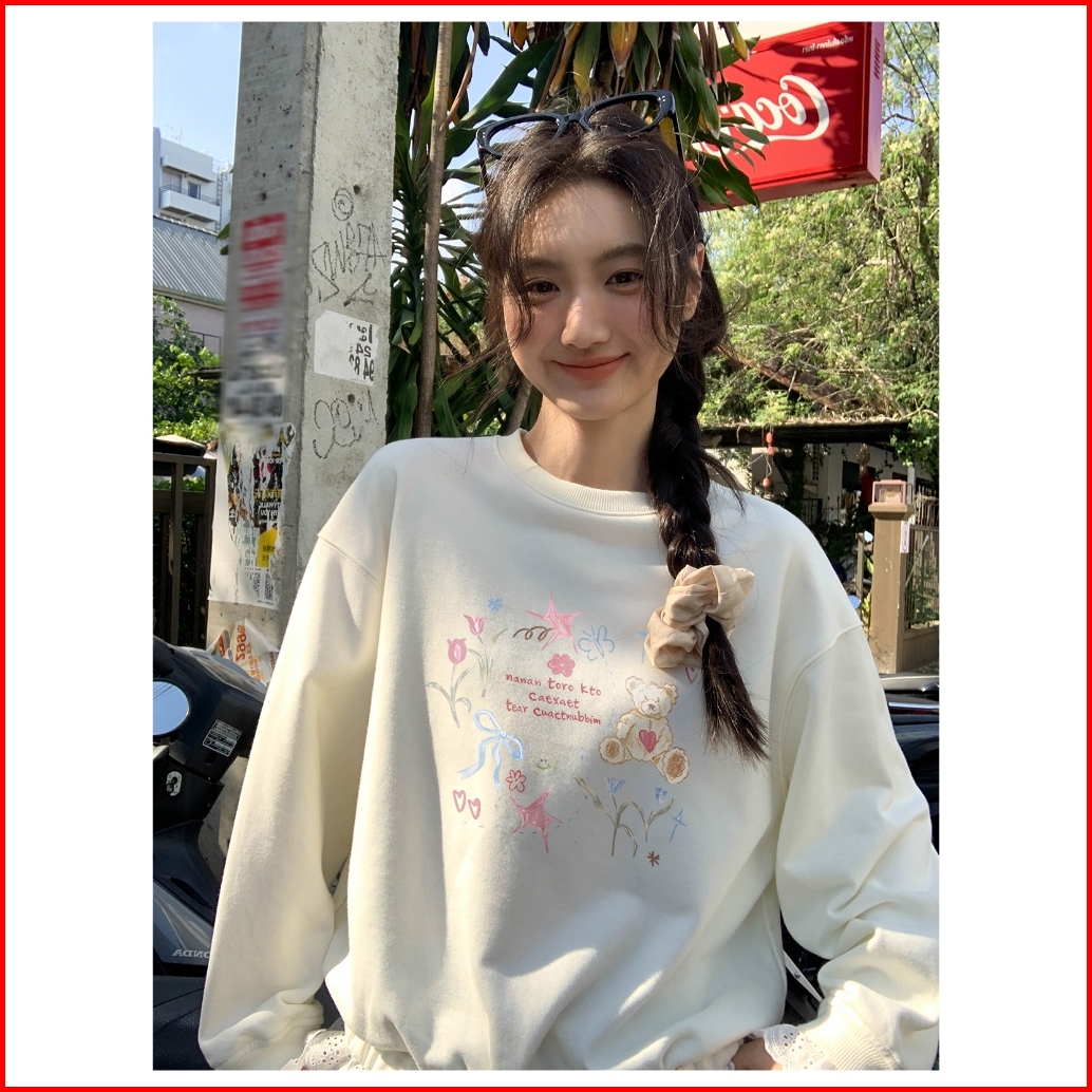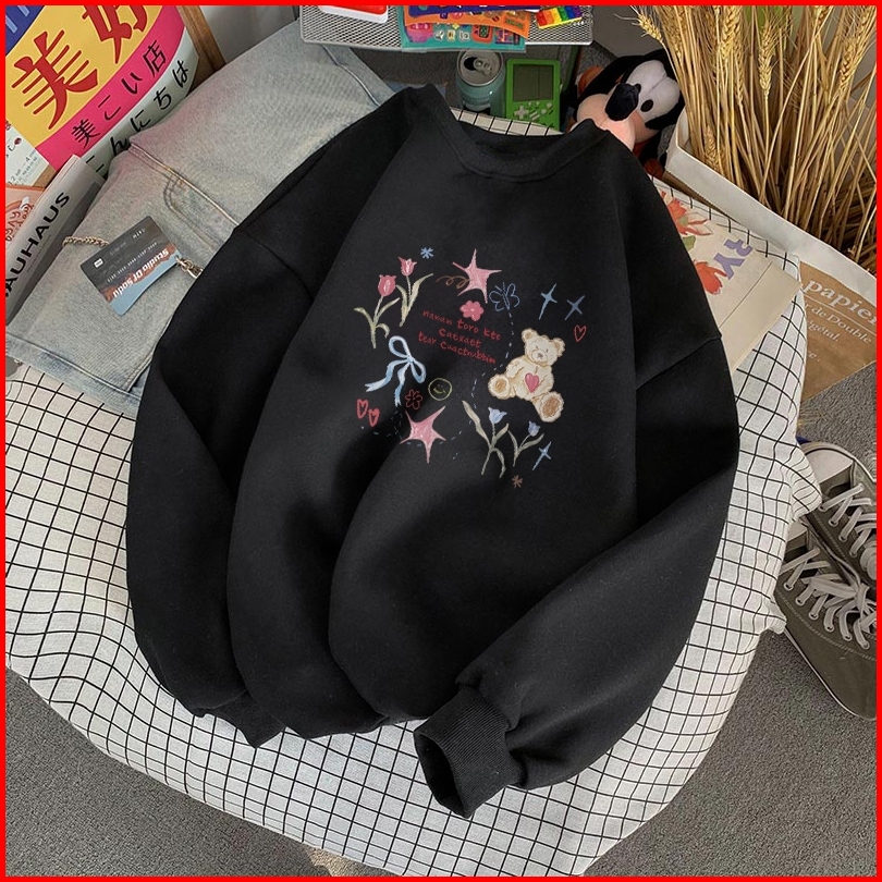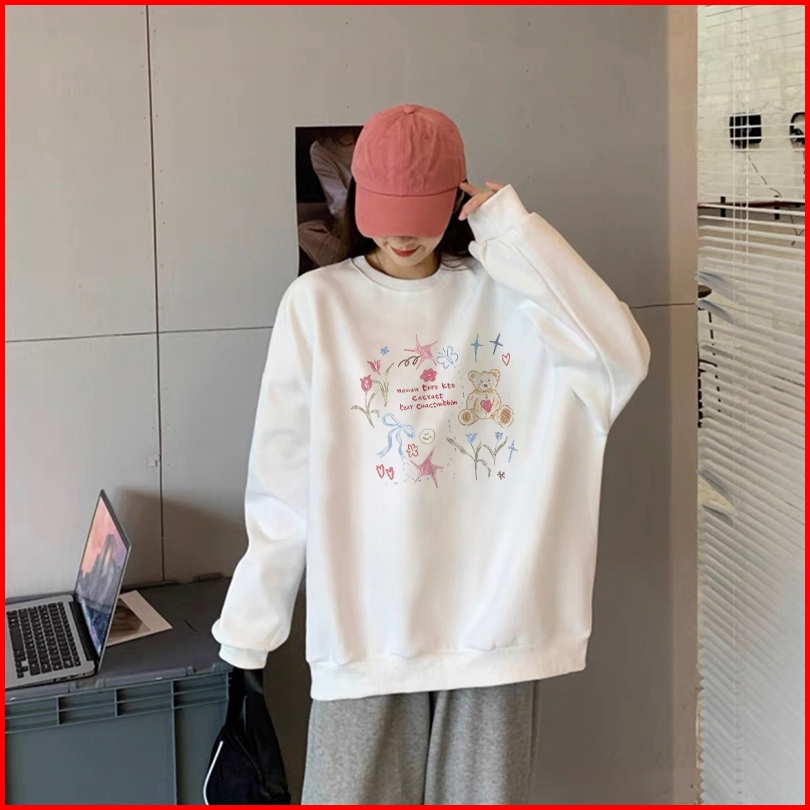Forteid Sweater Lengan Panjang Oversized Street Style Korean Style Switer Wanita Oversize Kaos Pola Beruang Yang Dilukis