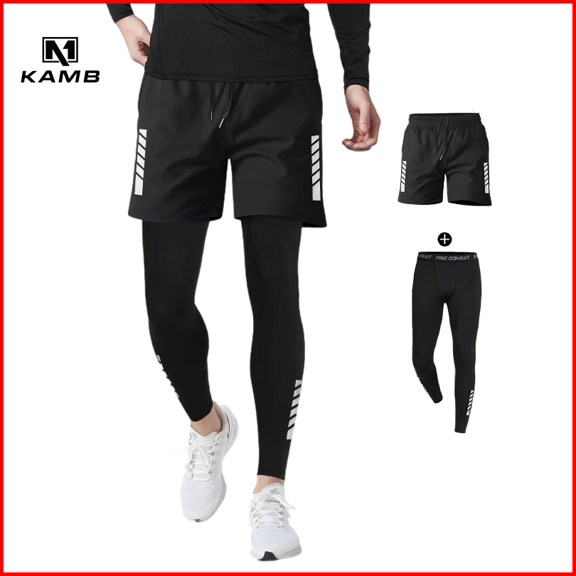 Produk Barukamb 2pcs Celana Legging Sport Panjang Pria Celana Pendek