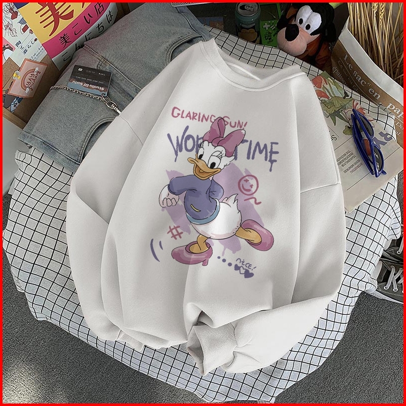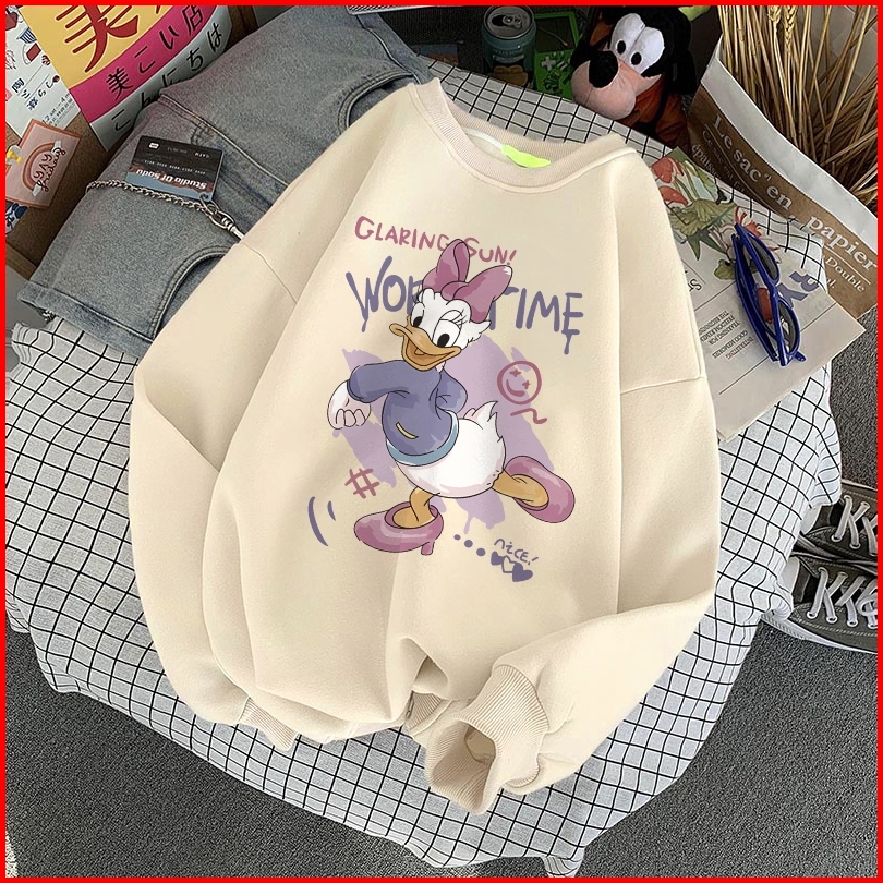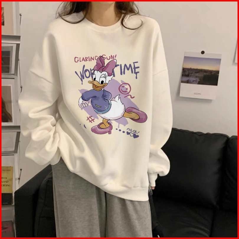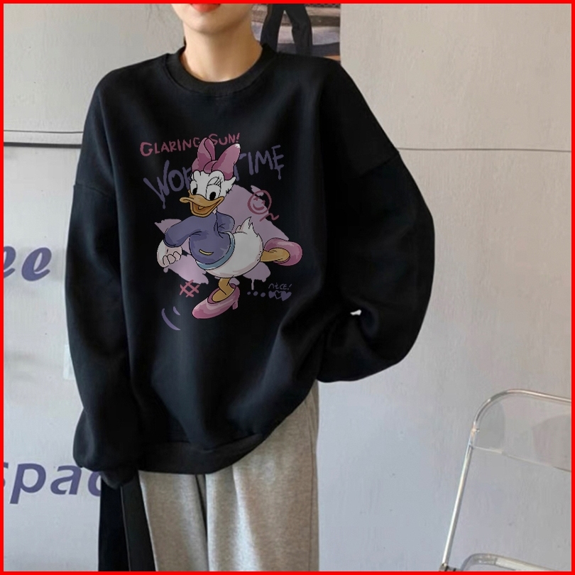 Forteid Sweater Lengan Panjang Oversized Street Style Korean Style Switer Wanita Oversize Kaos Pola Daisy Duck Lucu Glar