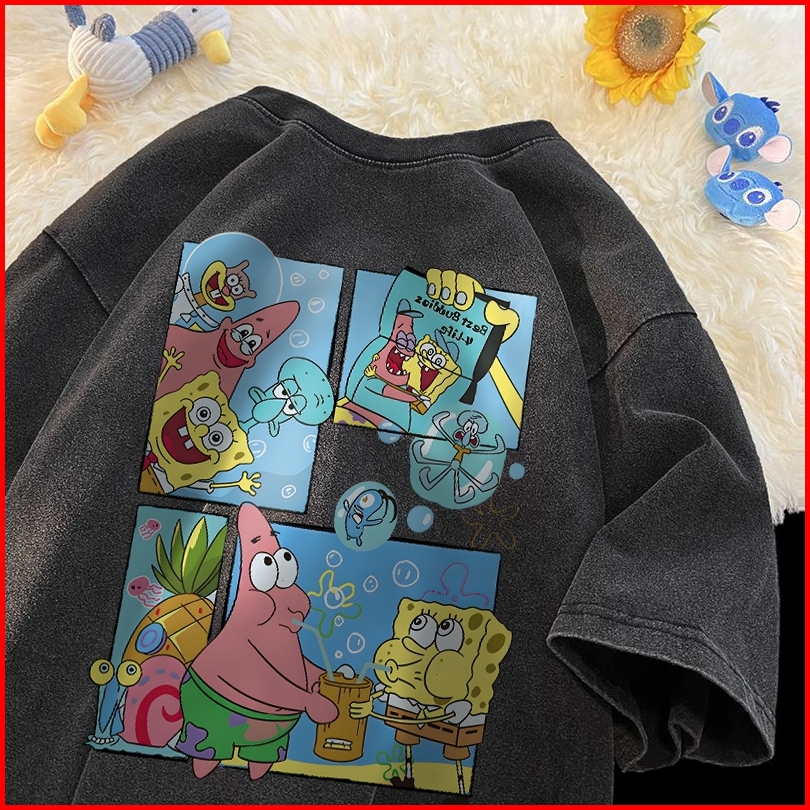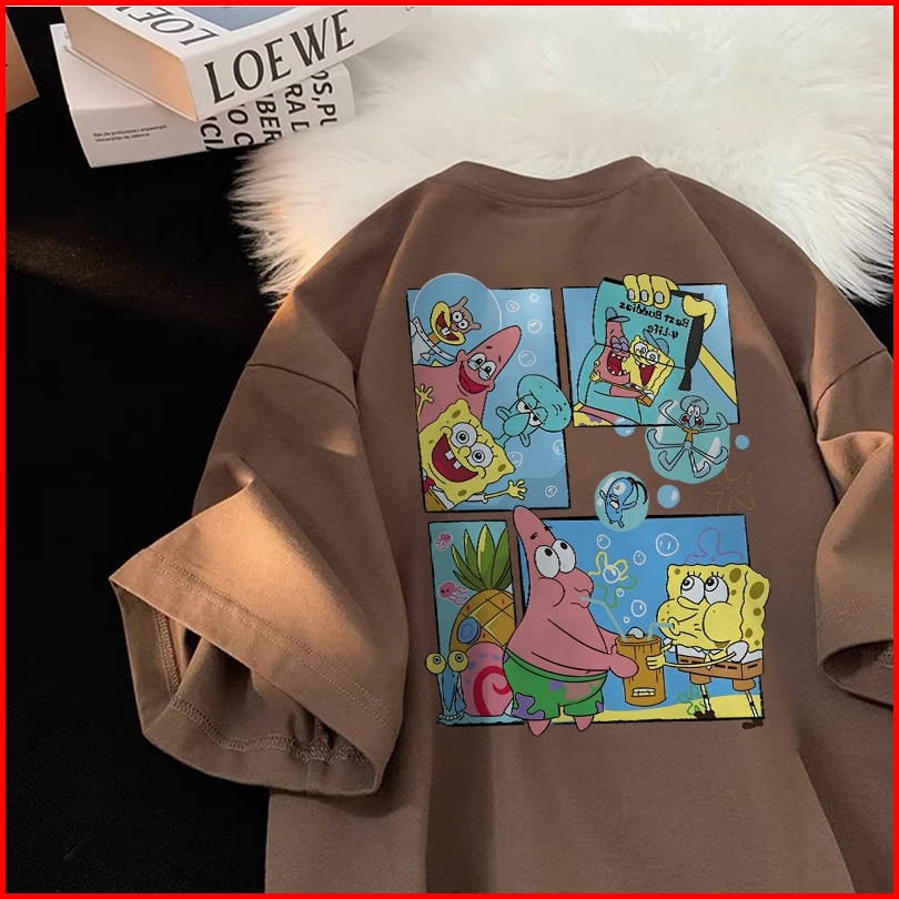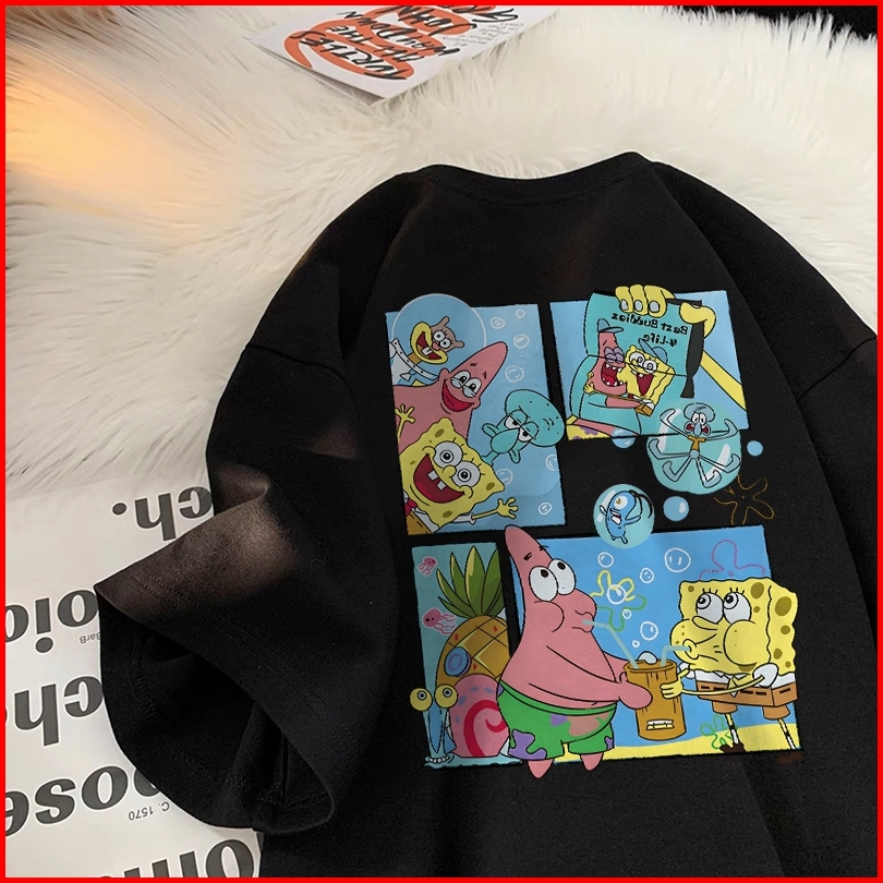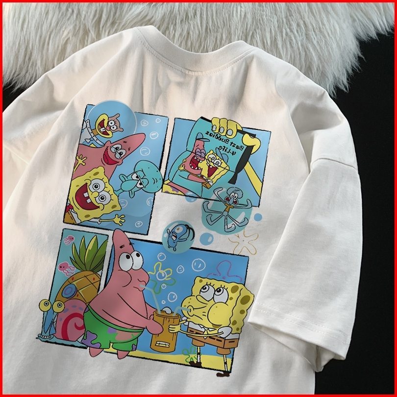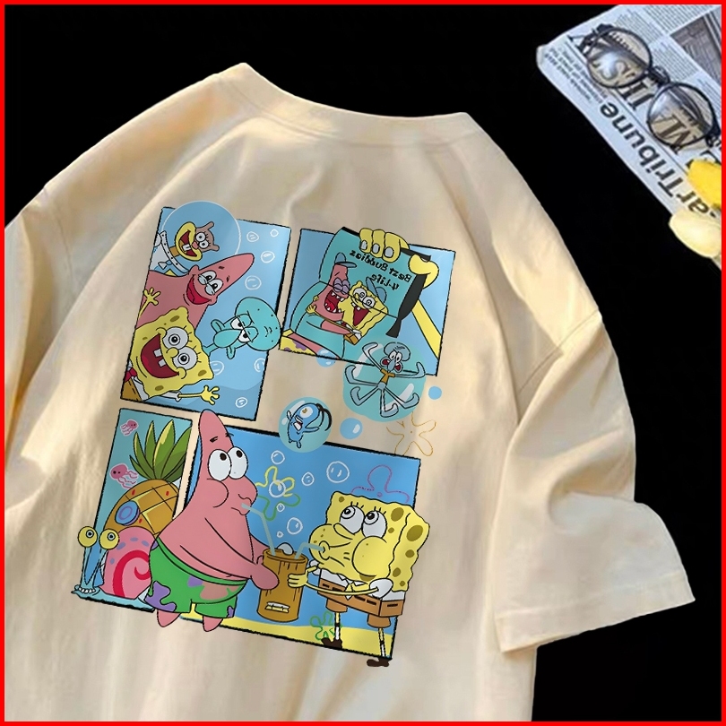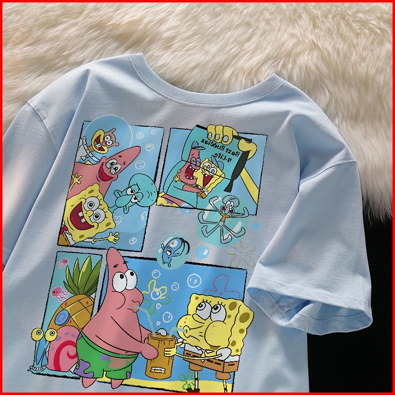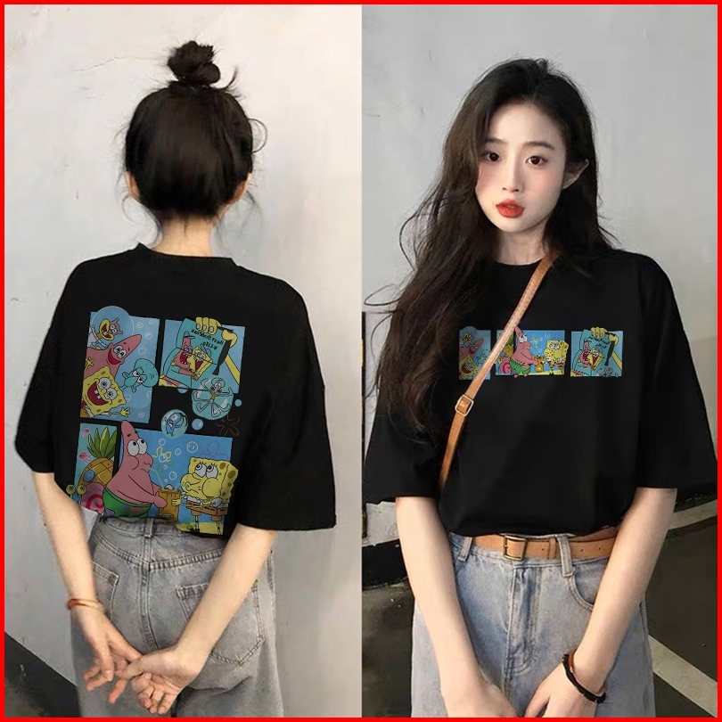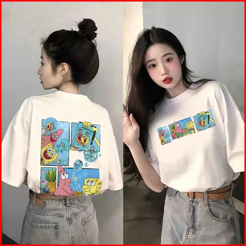 Forteid T-shirt Lengan Pendek Oversize Wanita Kaus Wanita Korea Baju Atasan Wanita Terbaru Kaos Cetakan Anime Spongebob
