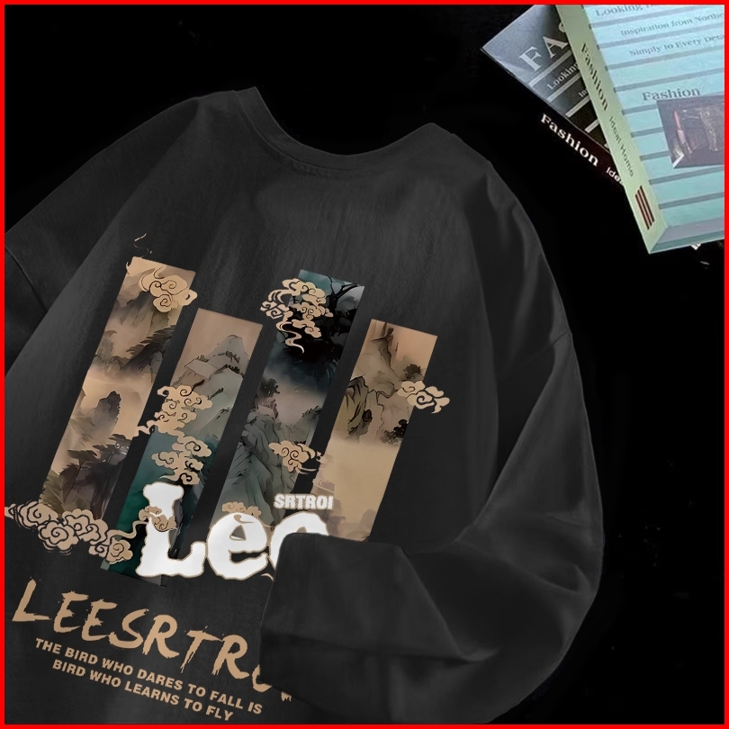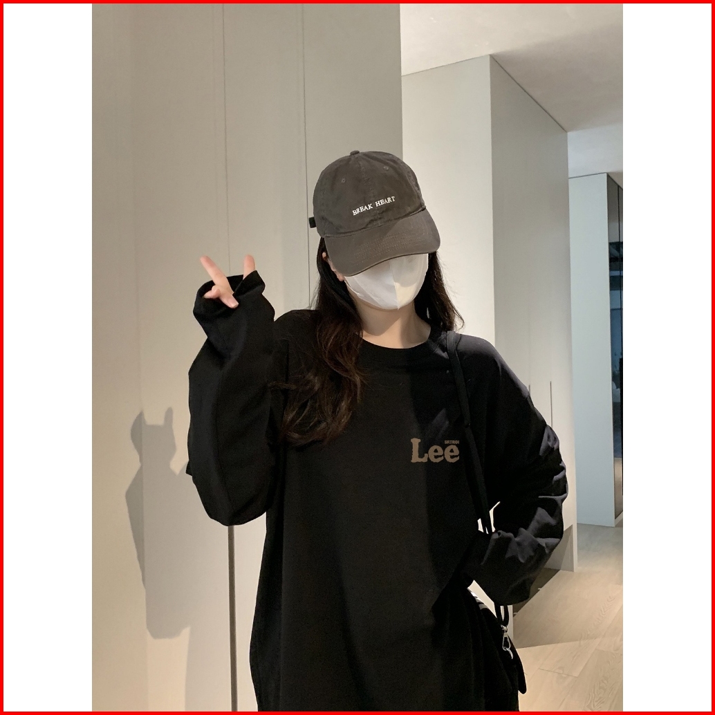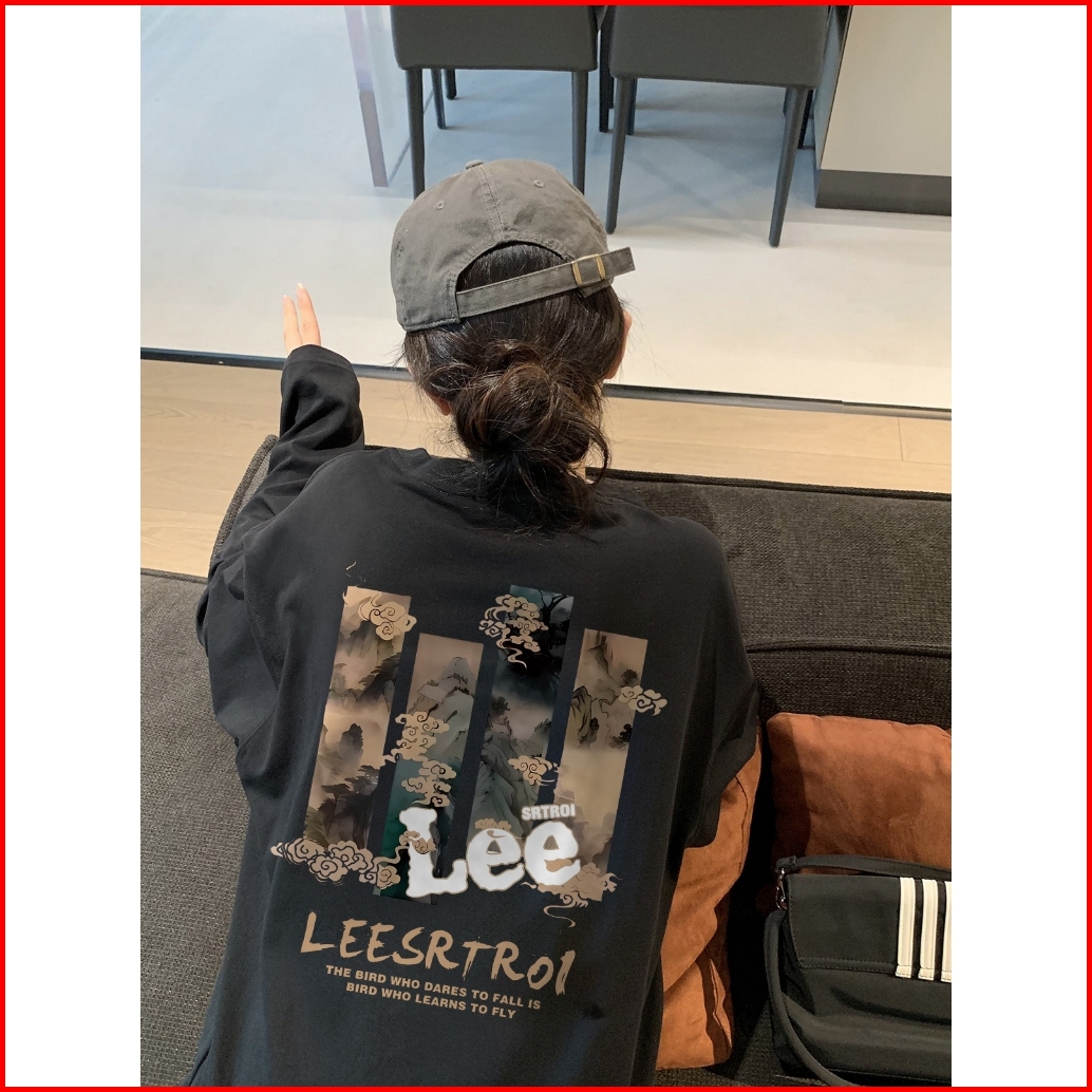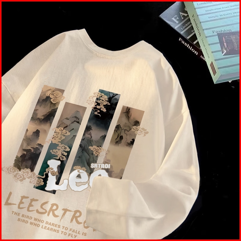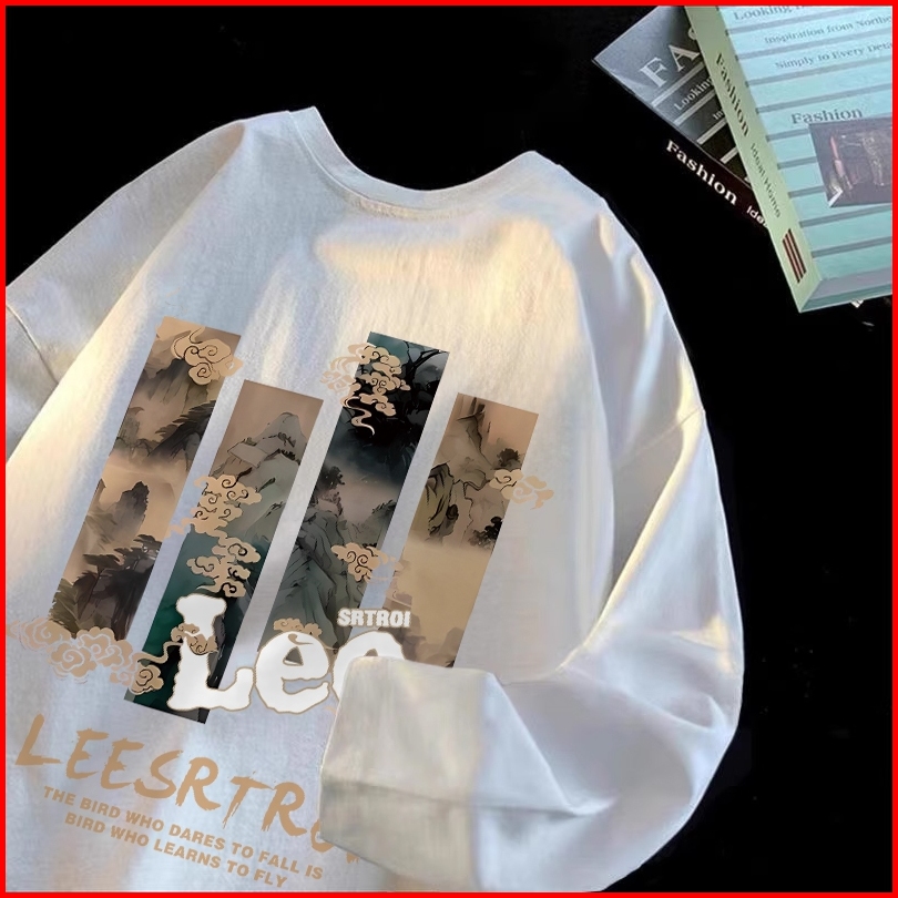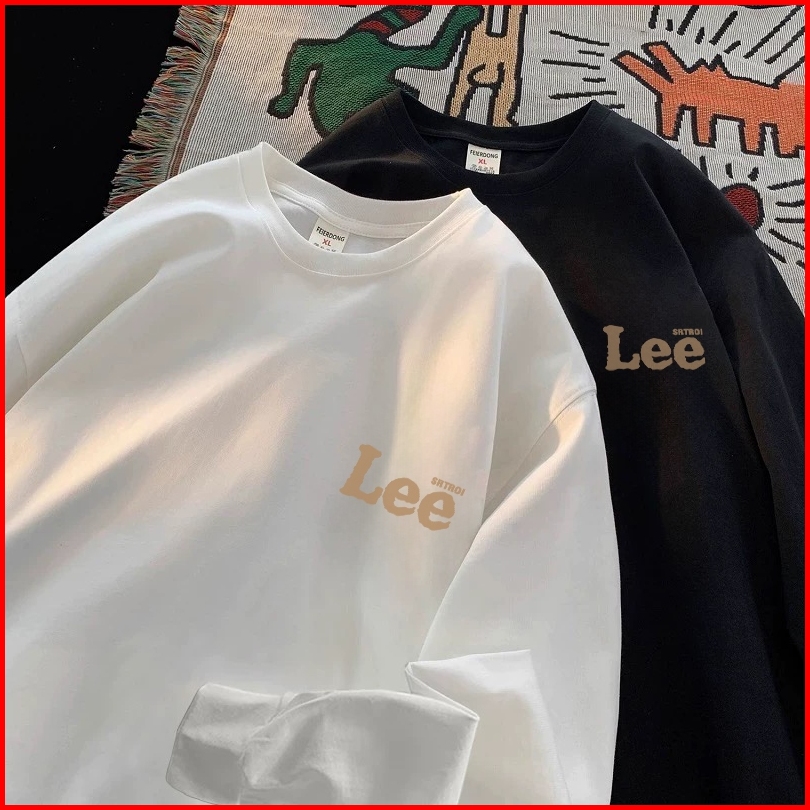 Forteid Atasan Kaos Wanita Oversize Lengan Panjang Korean Style Lee Cetakan Mode Retro Baju Kaos Polos Cotton Combed Pre