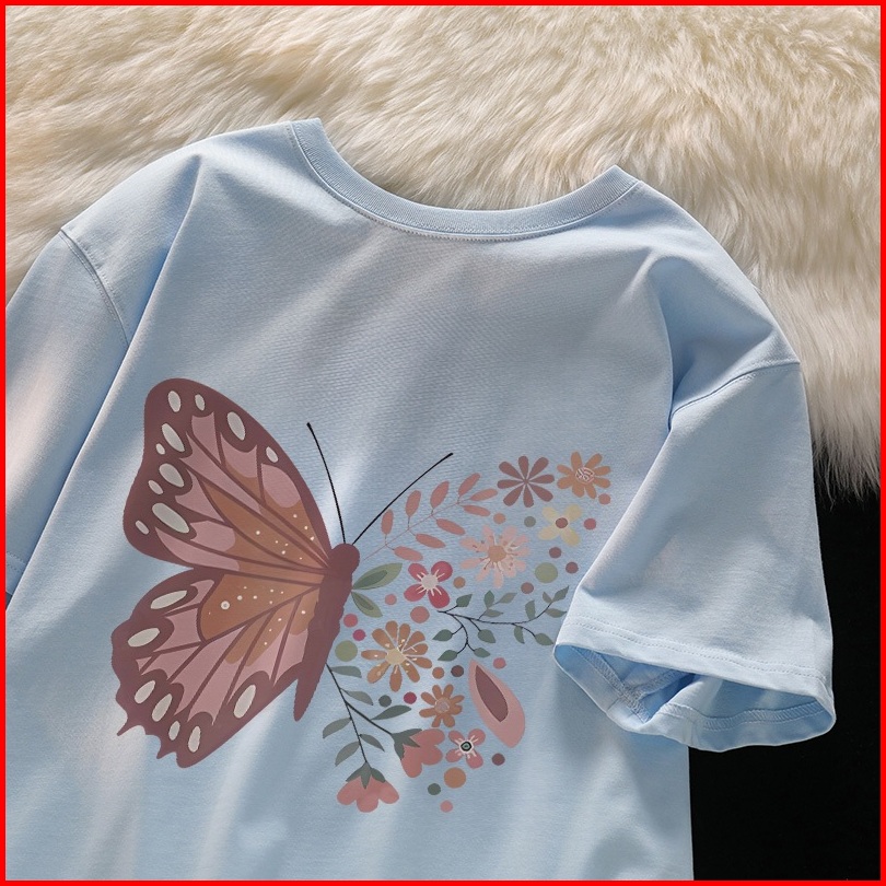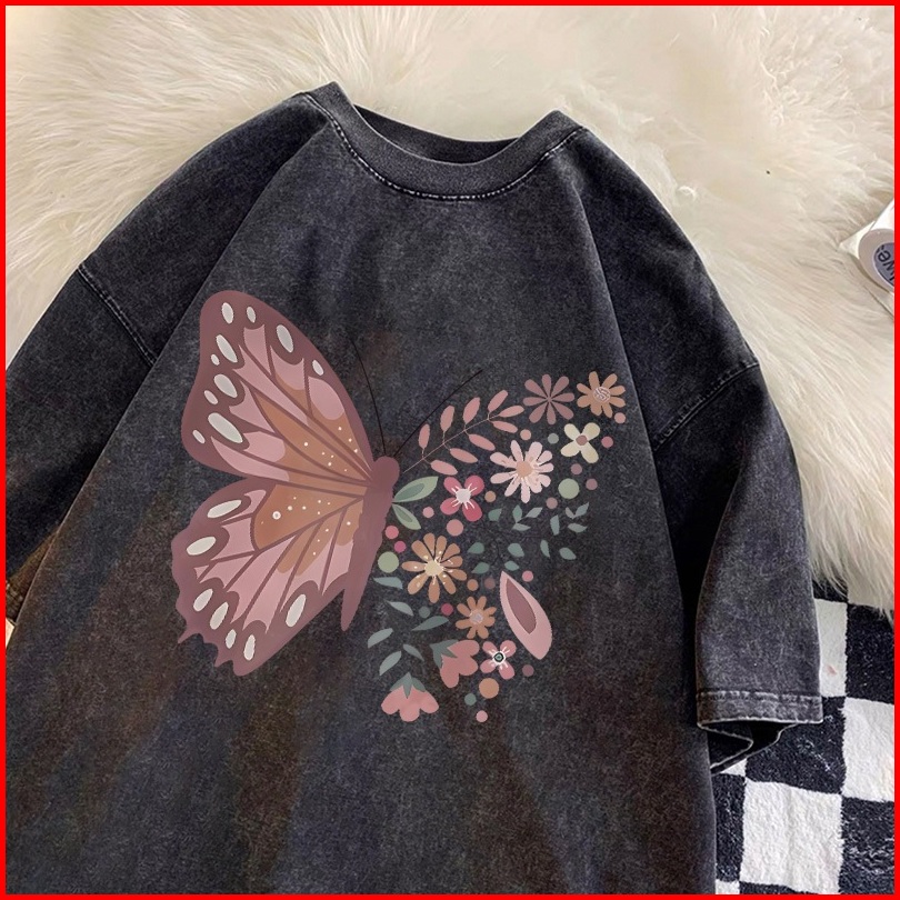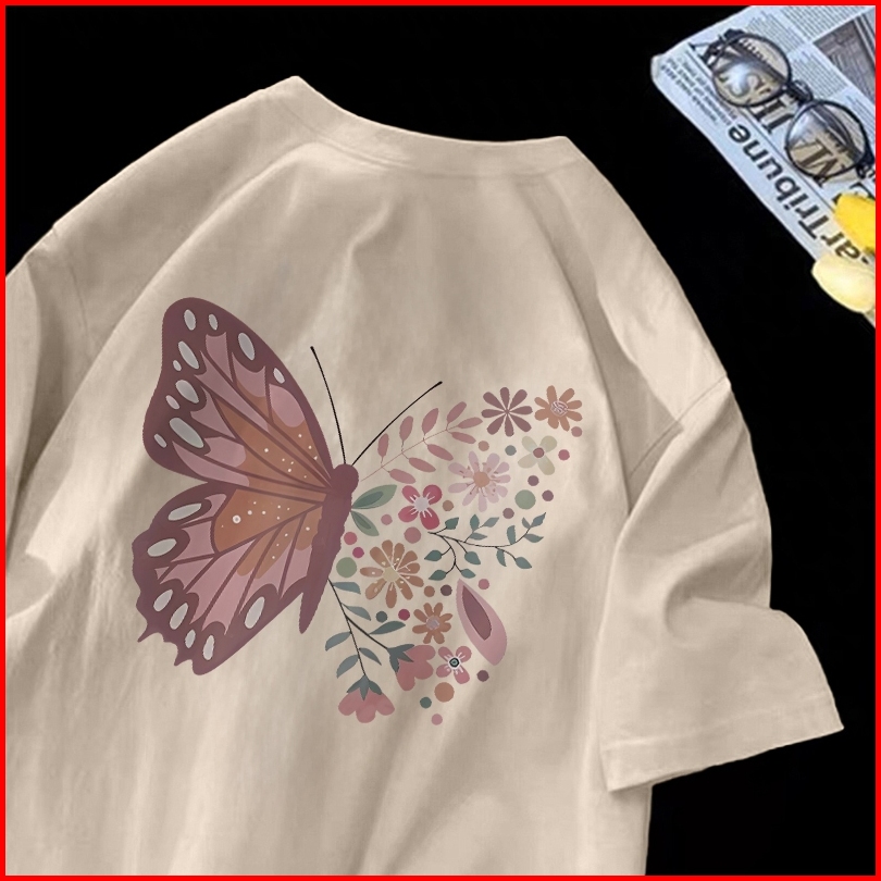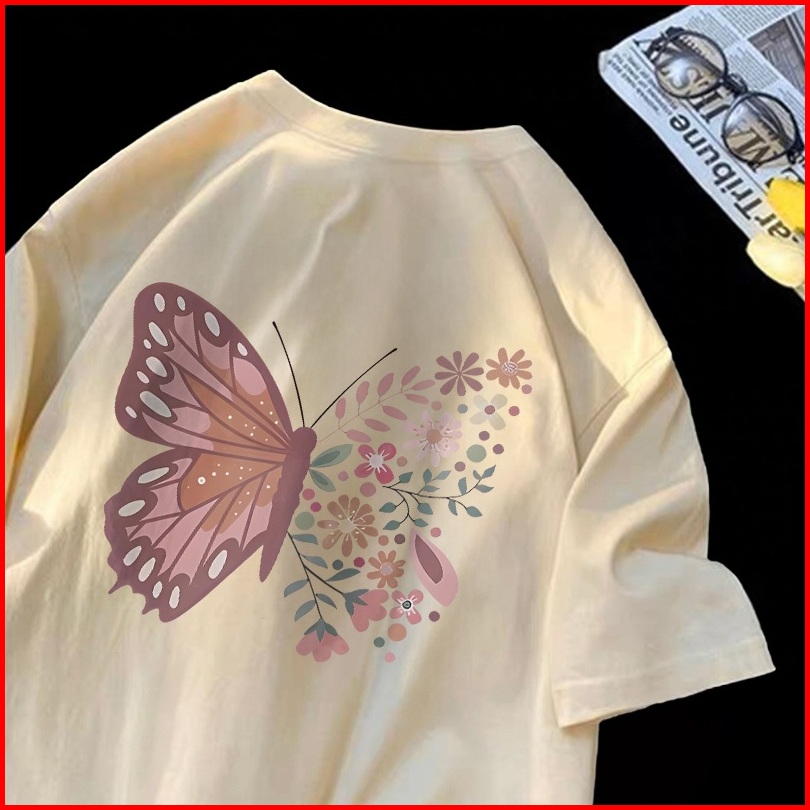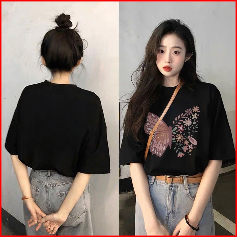 Forteid T-shirt Lengan Pendek Baju Kaos Oversize Wanita Baju Kaus Wanita Korea Baju Atasan Wanita Terbaru Pola Bunga Dan