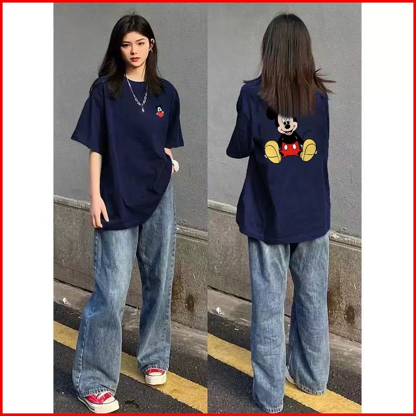 Forteid Biru Laut T-shirt Lengan Pendek Baju Kaos Oversize Wanita Baju Kaus Wanita Korea Baju Atasan Wanita Terbaru Mick