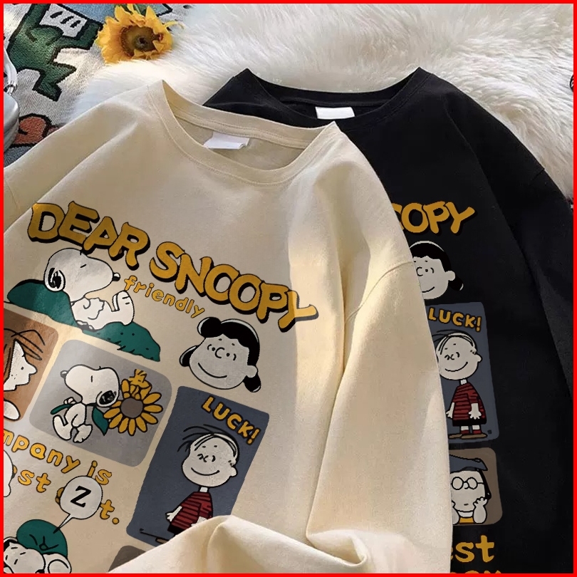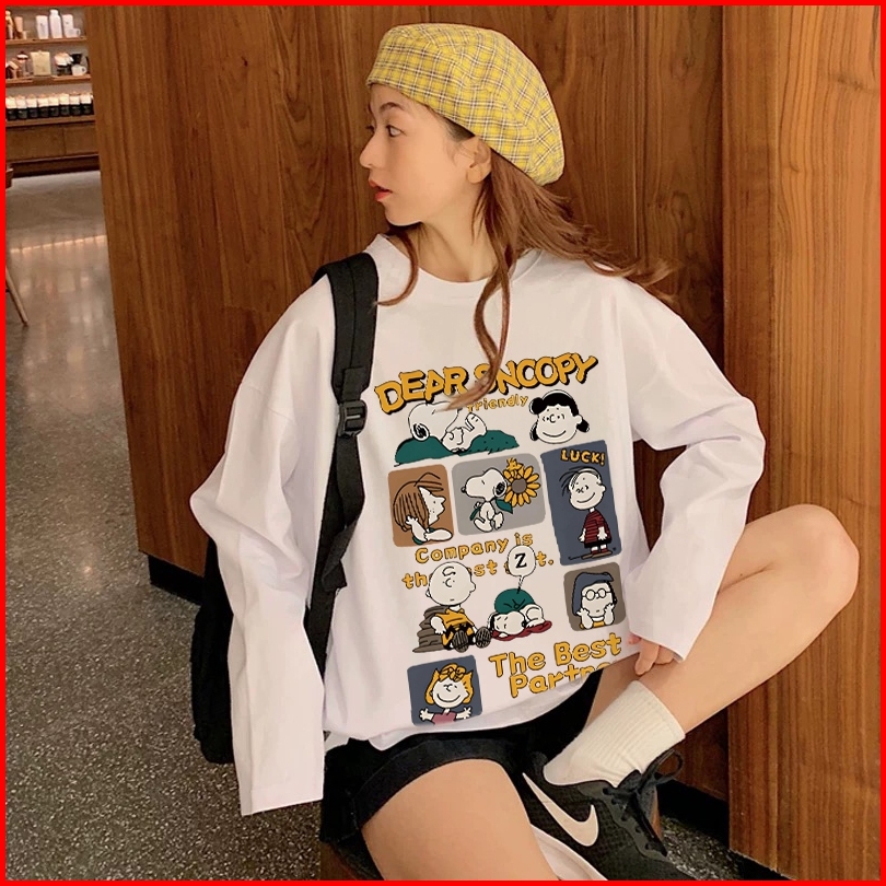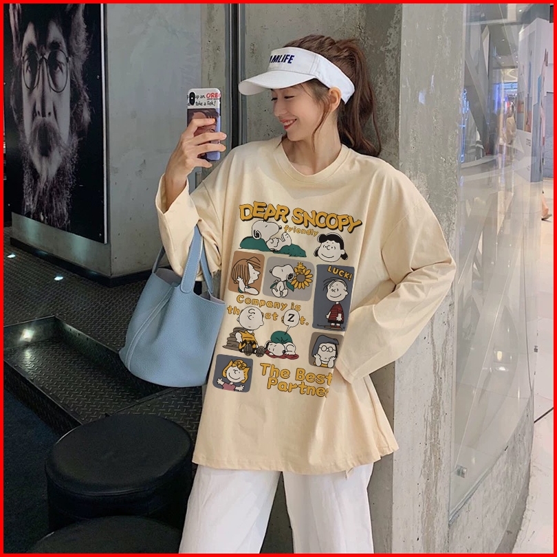 Forteid Atasan Kaos Wanita Oversize Lengan Panjang Korean Style Cetakan Pola Kartun Snoopy Dalam Berbagai Adegan Baju Ka