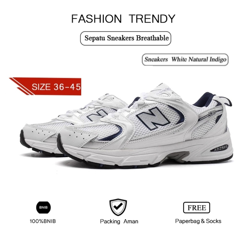 100% BNlB Sepatu olahraga pria wanita NB 530 White Silver Natural Indigo MR530SG Sepatu olahraga Sepatu pria sepatu wani