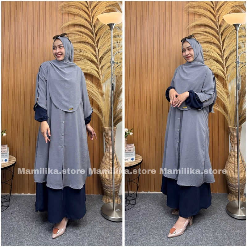 Noura Set Tunik Hijab Pashmina 3in1 Rok + Tunik + Kerudung Syari