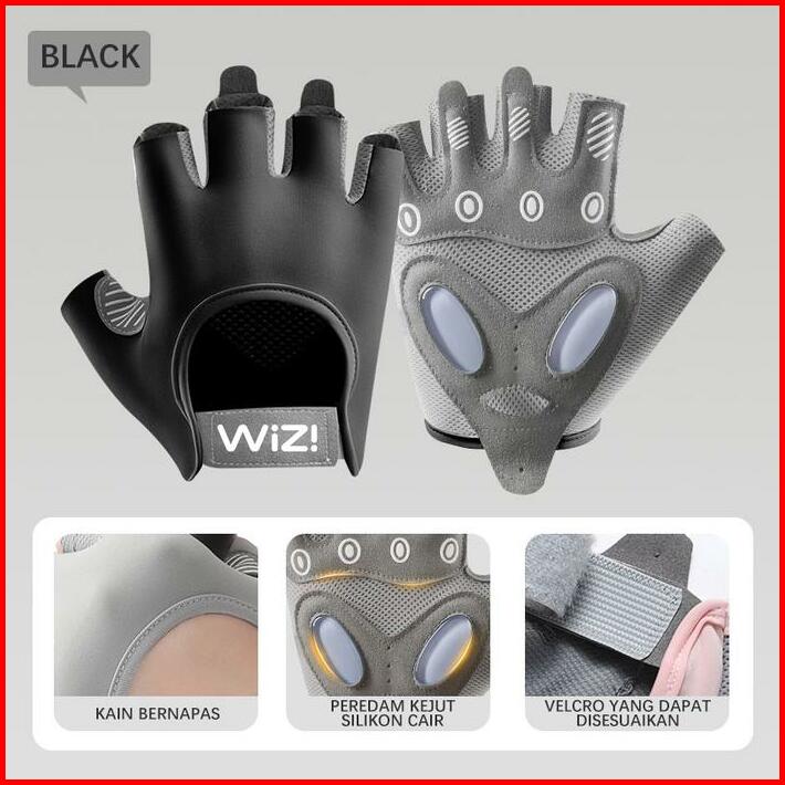 Wizi Sarung Tangan Olahraga Perlindungan Matahari Non-slip Bernapas Half Finger Glove Alat Ao09