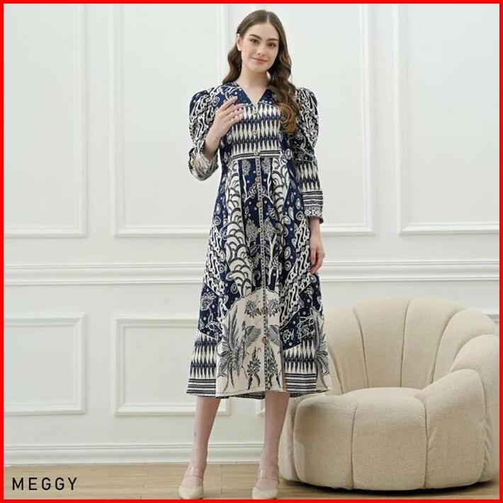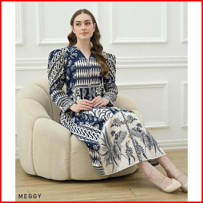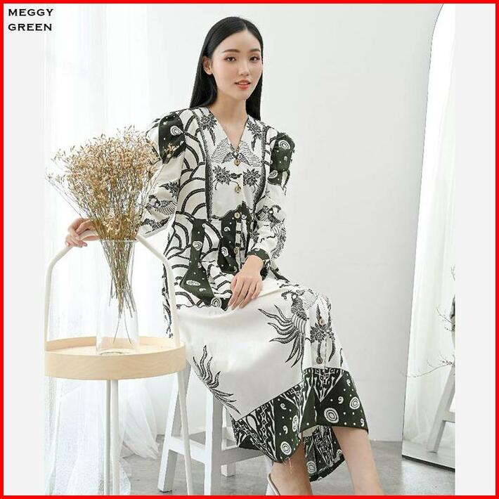 Evercloth Meggy Gamis Batik Dress Batik Wanita Lengan Panjang Terusan Batik