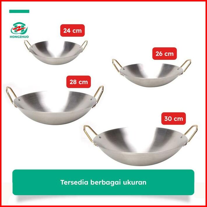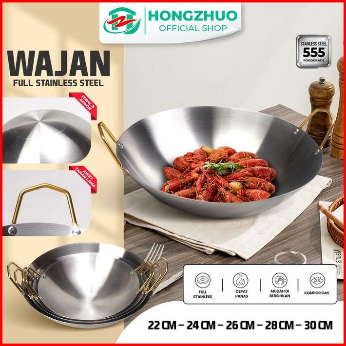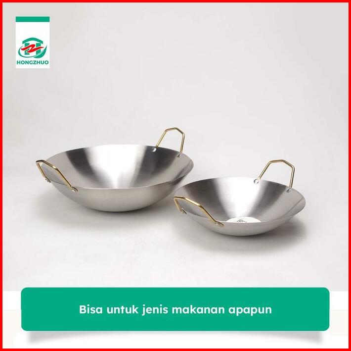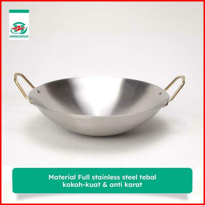 Hongzhuo Wajan Stainless Tebal Pegangan Stainless Premium Quality Masak Nasi Penggorengan Steel Kitchenware