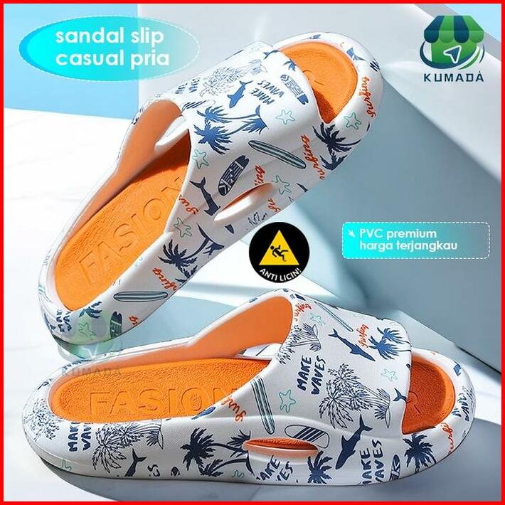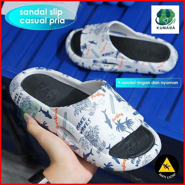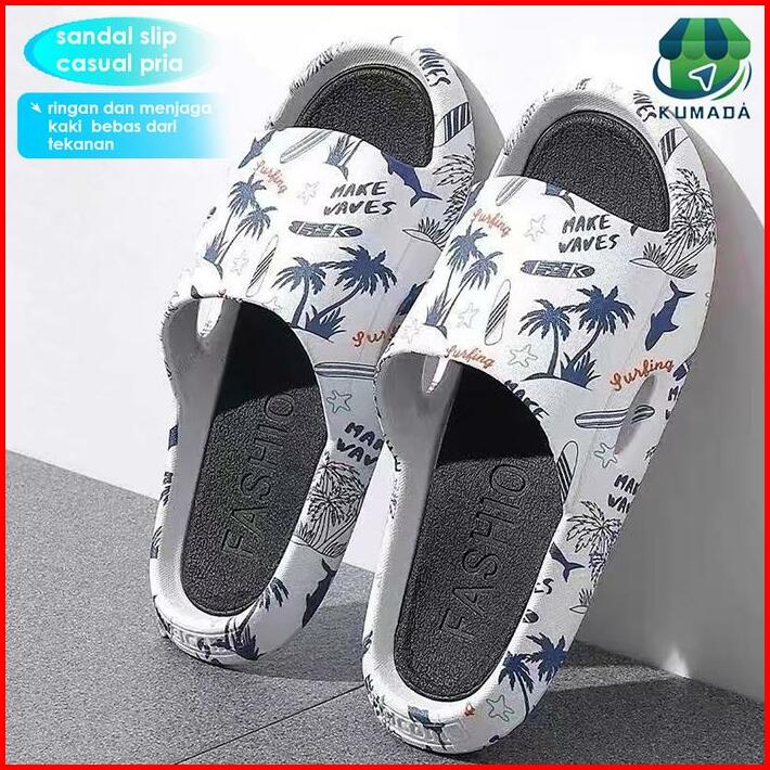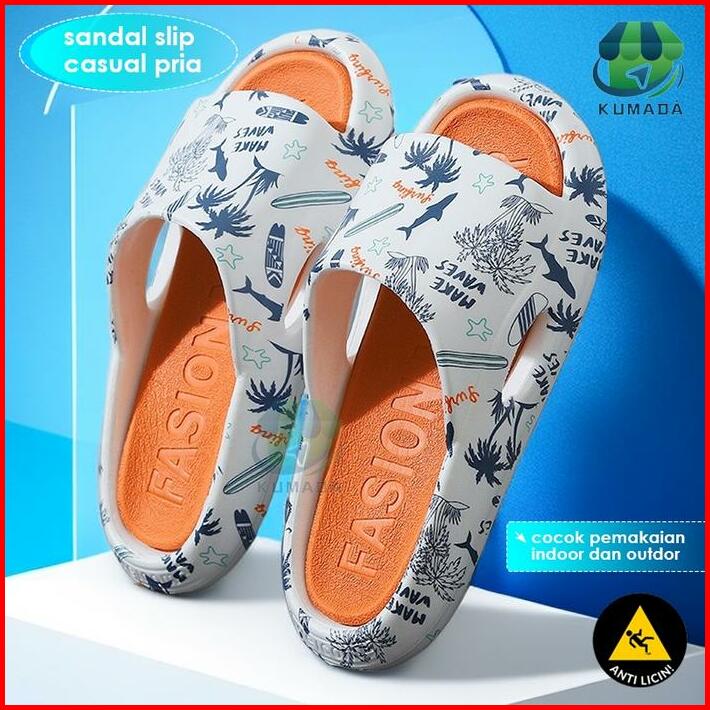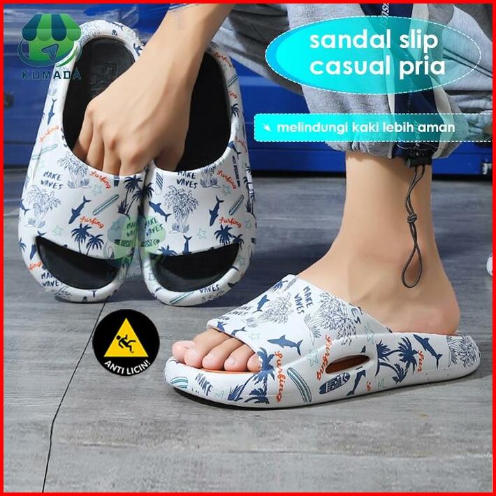 Sandal Pria Karet Modern Anti Selip Pola Kartun Gaya Dewasa Elastic Empuk Tebal Dan Tahan Lama Shoes Sendal