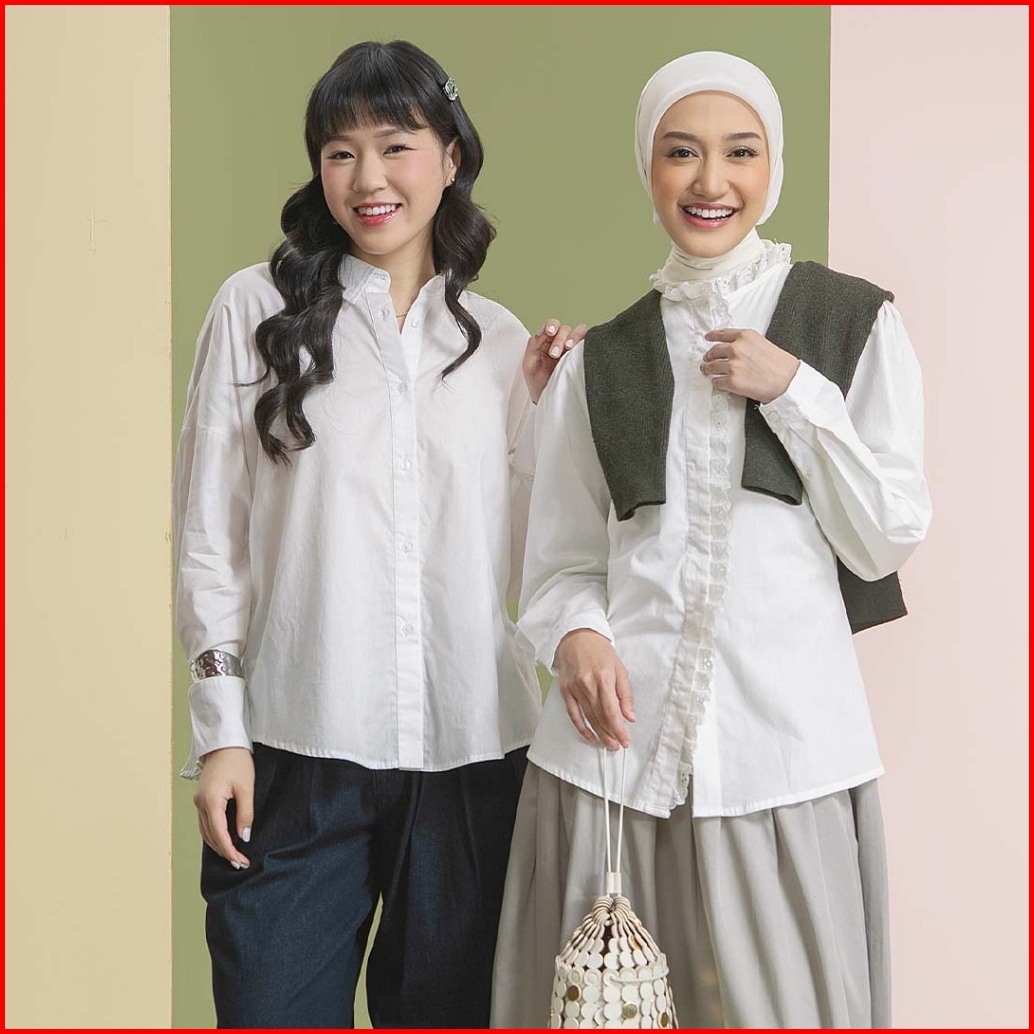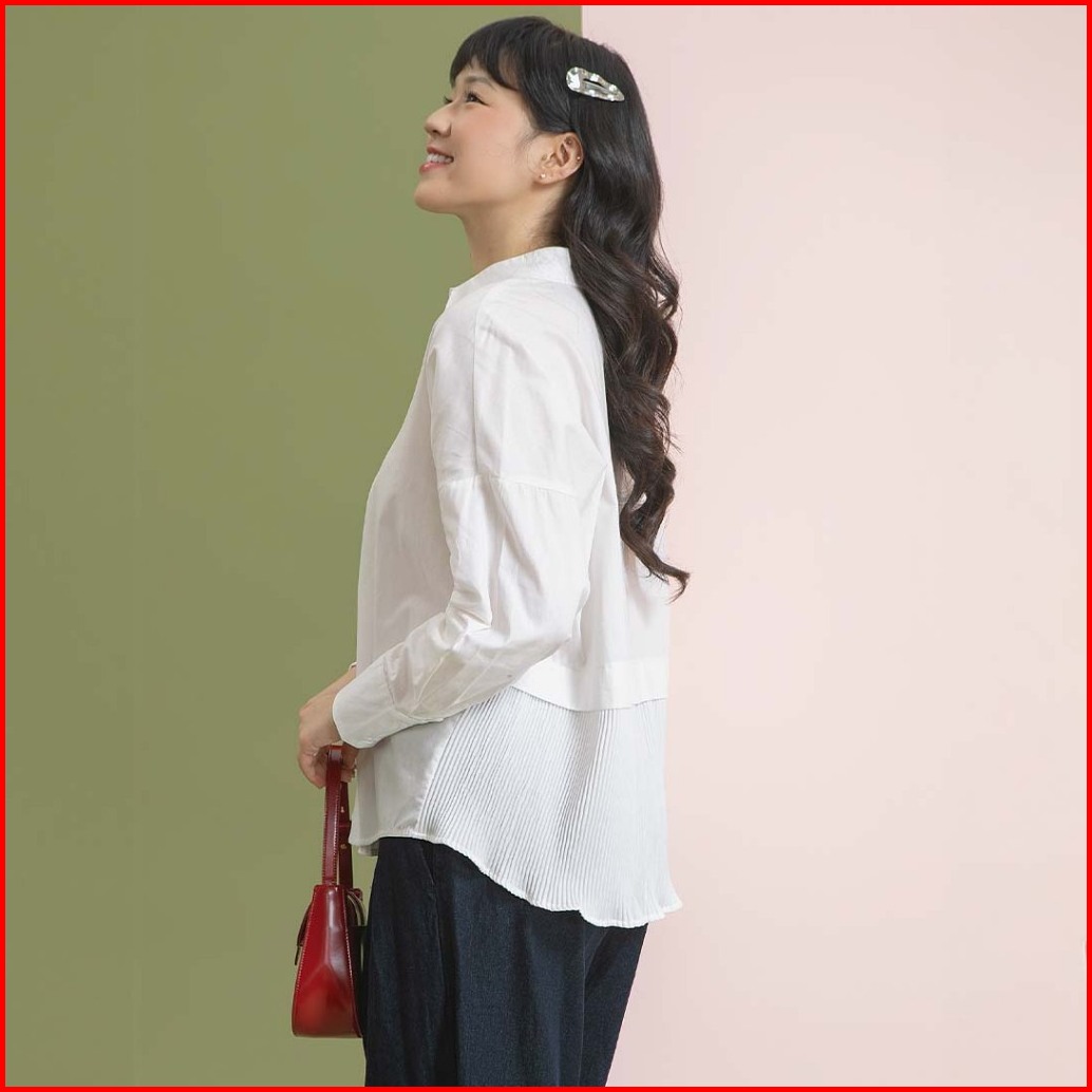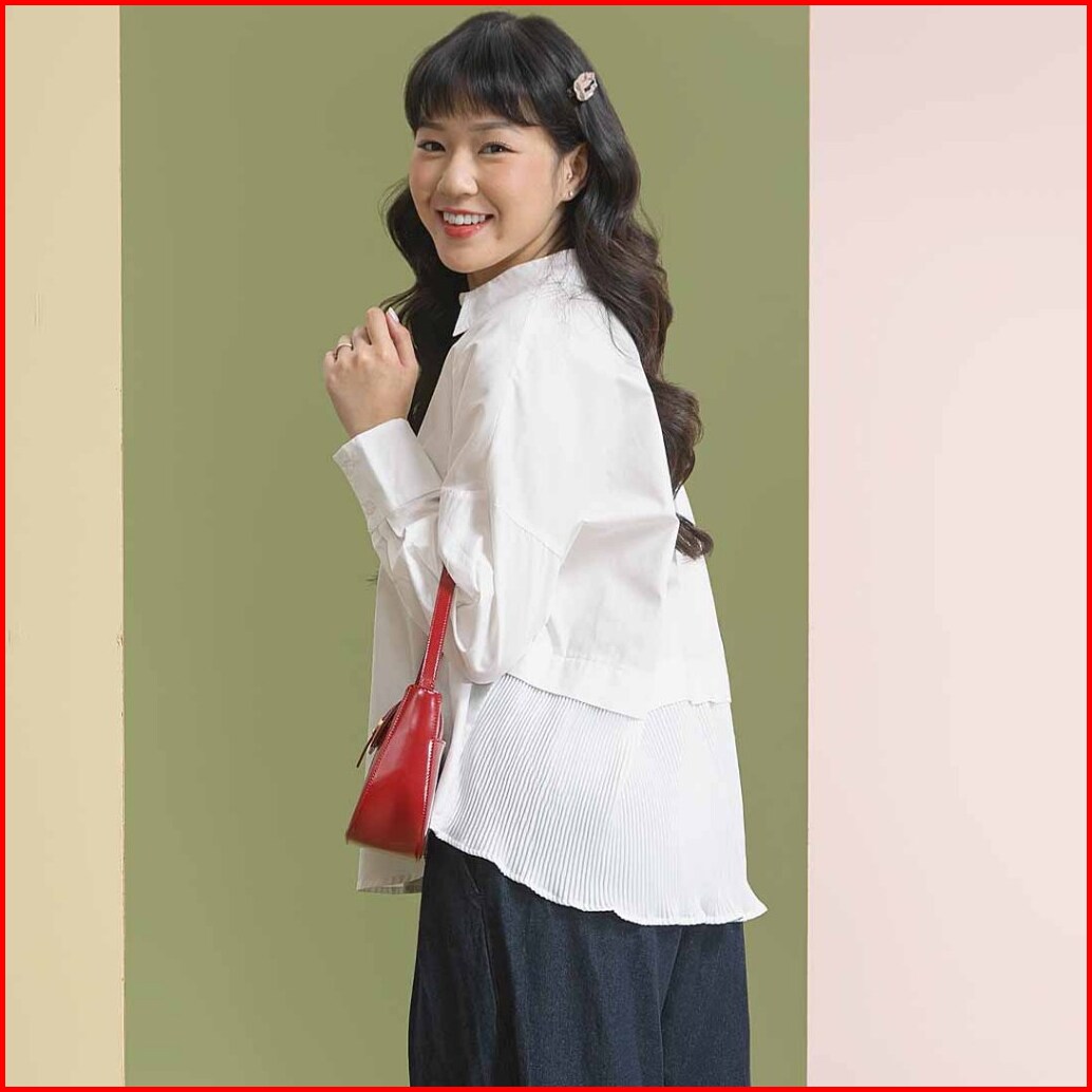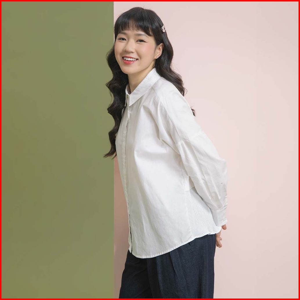 Hijabchic Vela Broken White Top - Kemeja Katun Lembut Polos Pleats Belakang