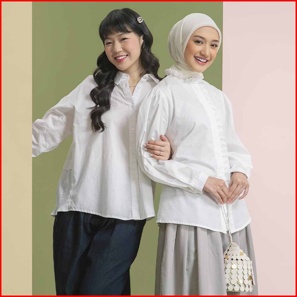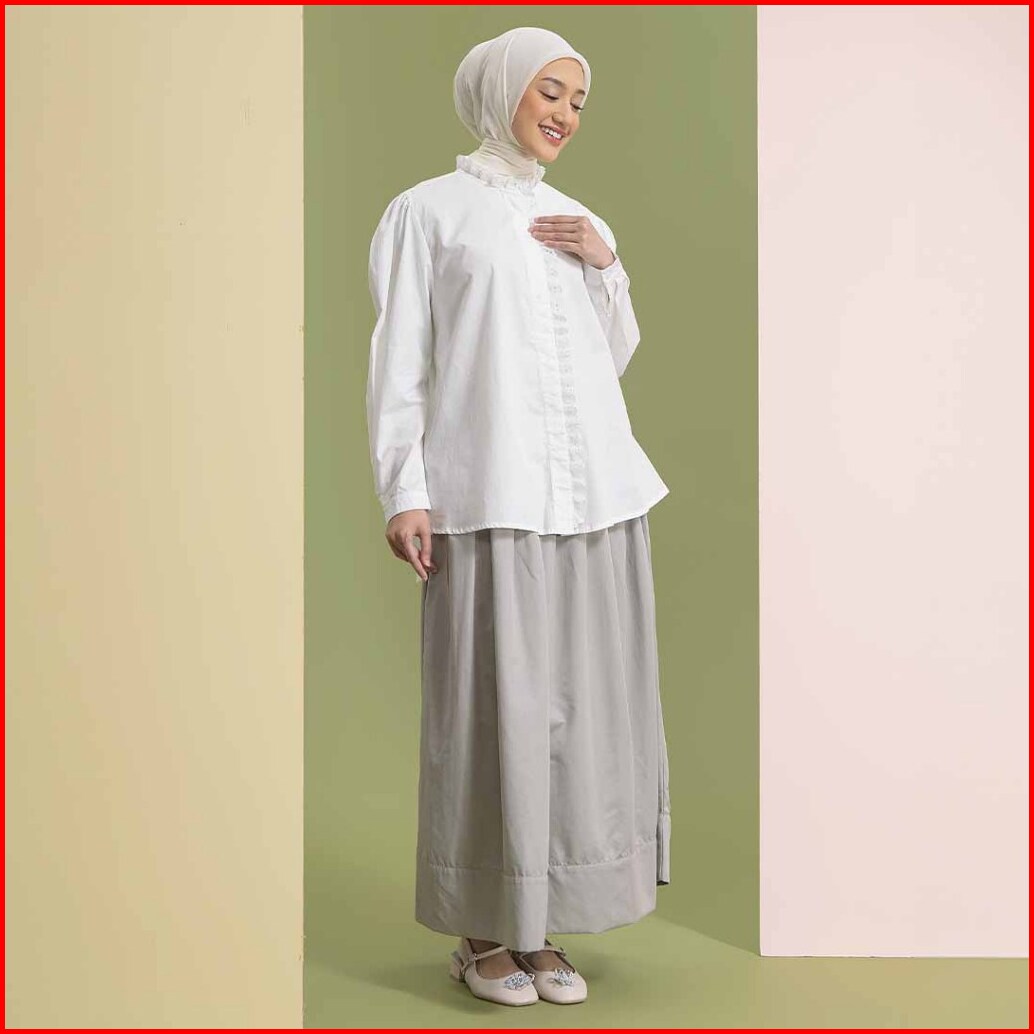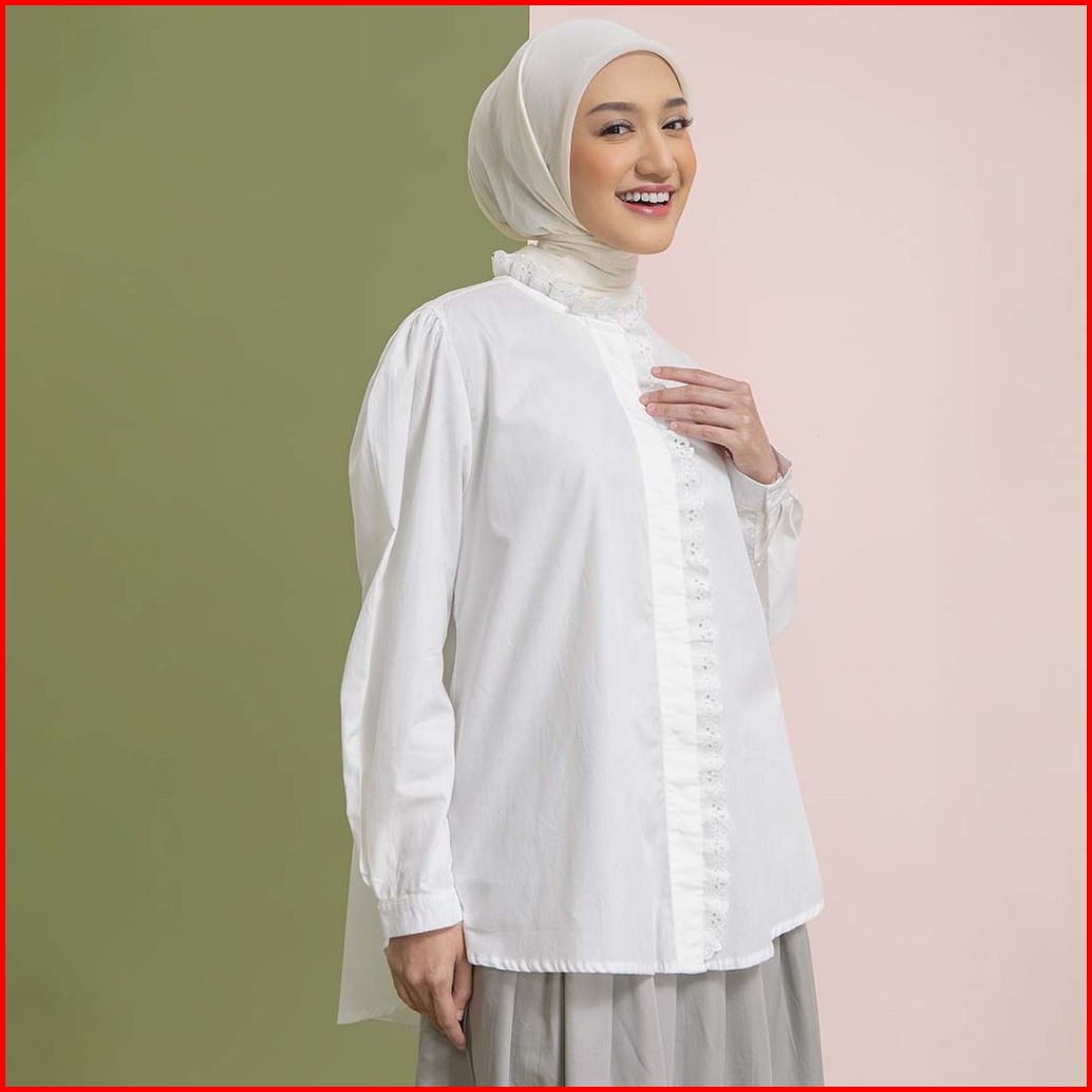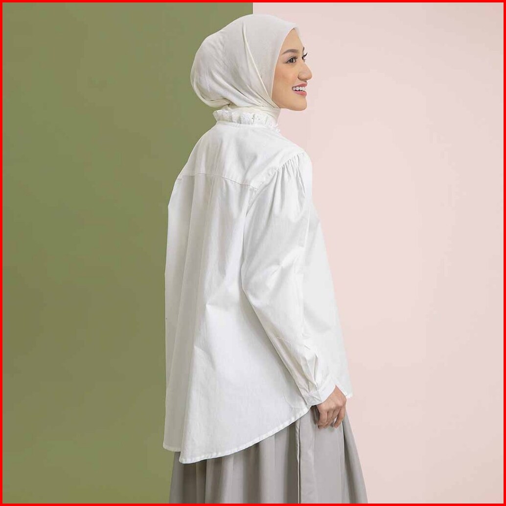 Hijabchic Melia Broken White Top - Kemeja Katun Polos Ruffle Kancing