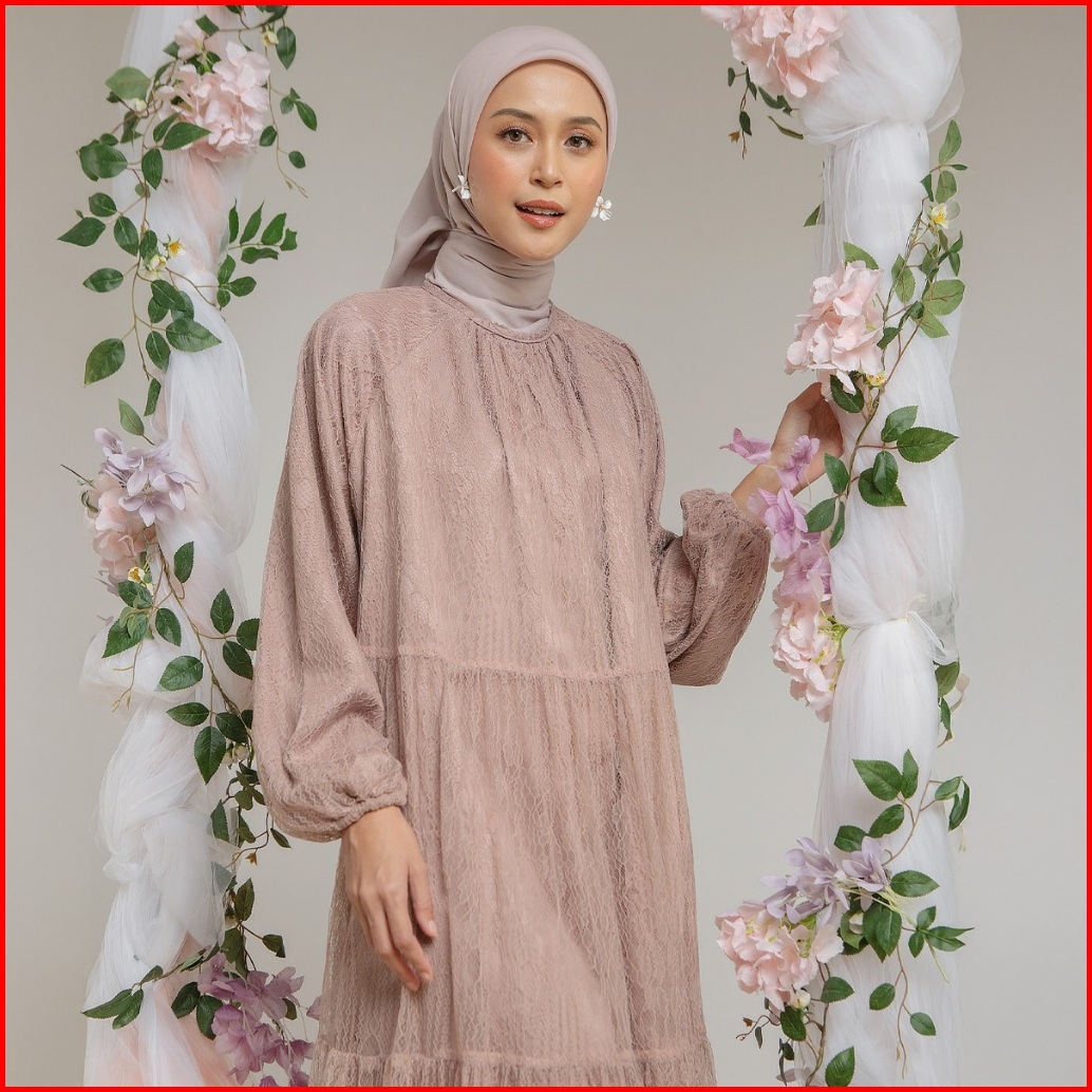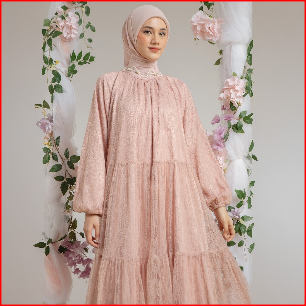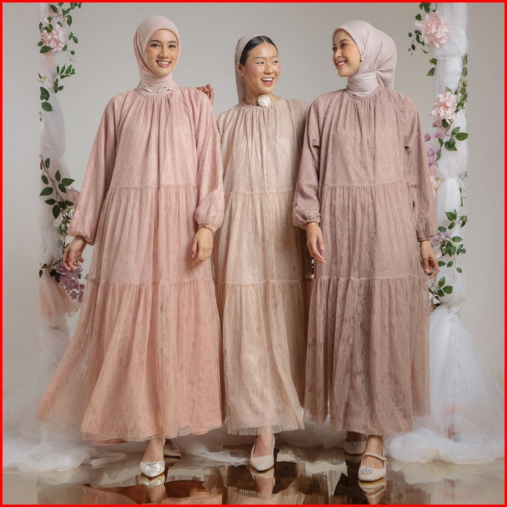 Hijabchic Allura Dress - Dress Kondangan A-line Brukat Bunga Tulle Layer Furing Elegan Layer Kerut