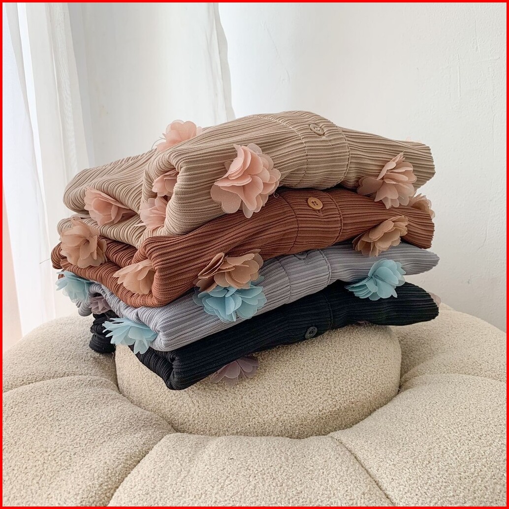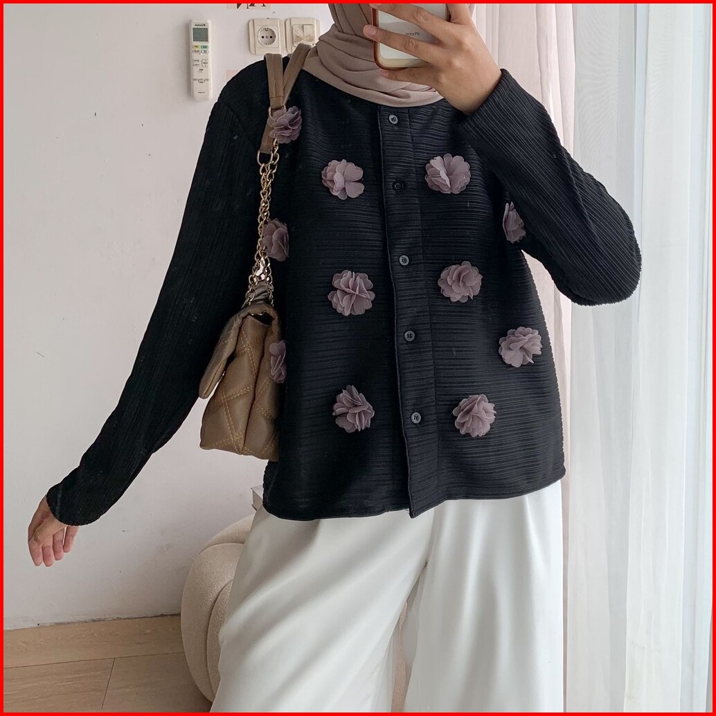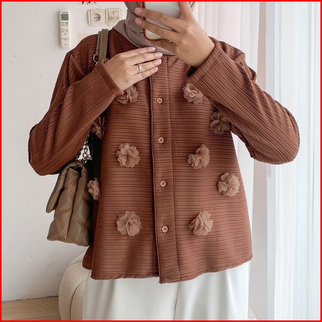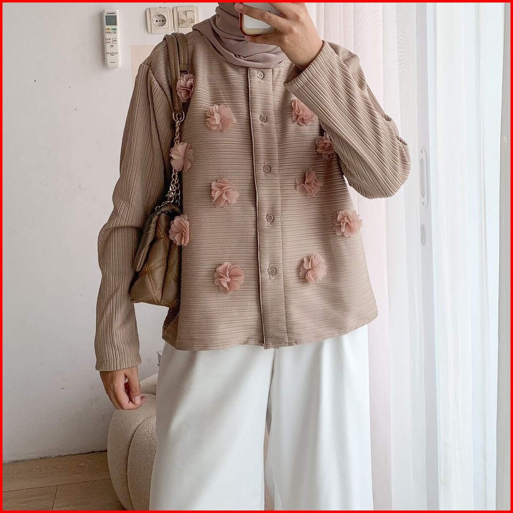 Summer Pleated Plisket Shirt Kemeja Bunga