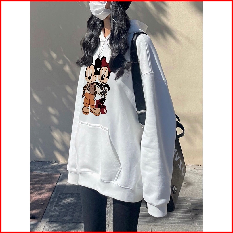 Forteid Oversize Hoodie Wanita Korean Style Oversize Hoodie Sweater Cetakan Mickey Mouse Baju Wanita Kekinian Baju Wanit