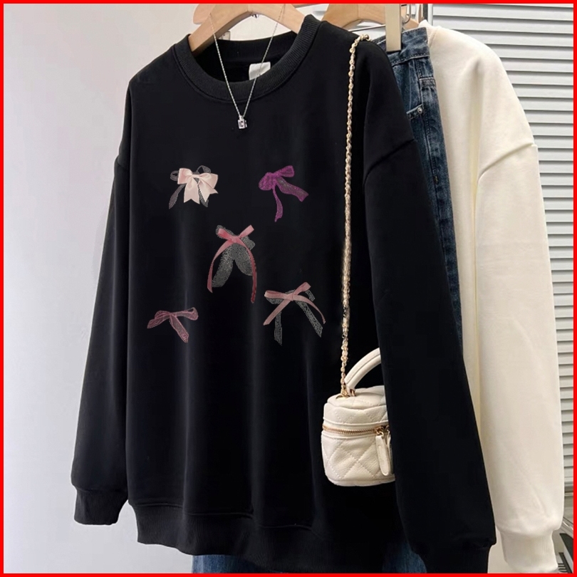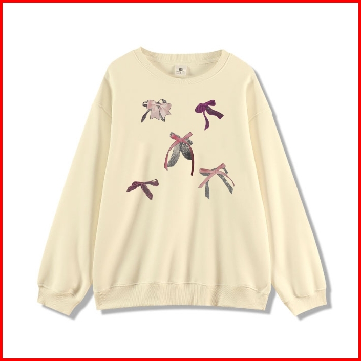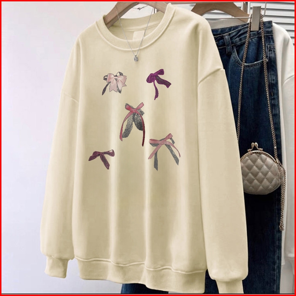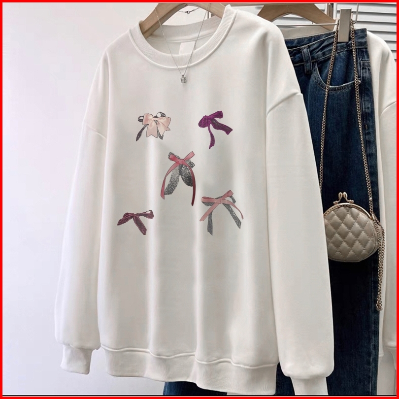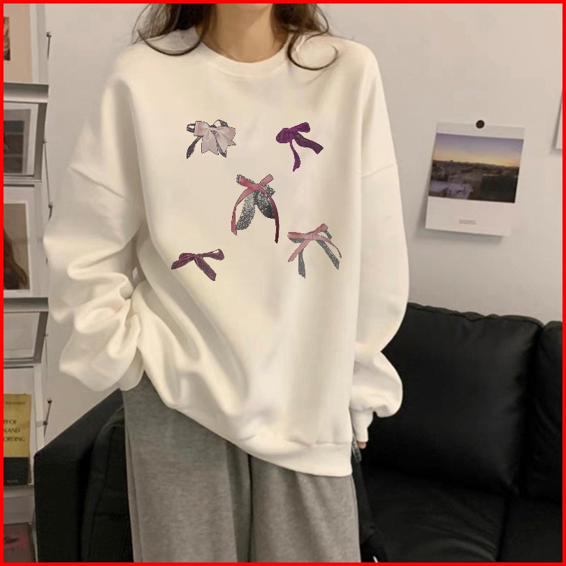 Forteid Cetakan Busur Switer Wanita Oversize Kaos Pola Merek Trendi Korean Style Sweater Oversize Crewneck Wanita Crewne