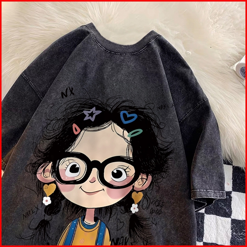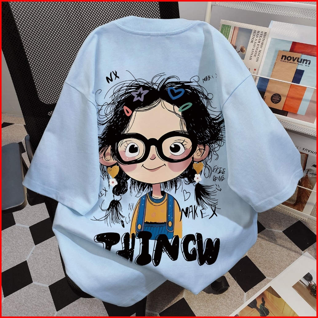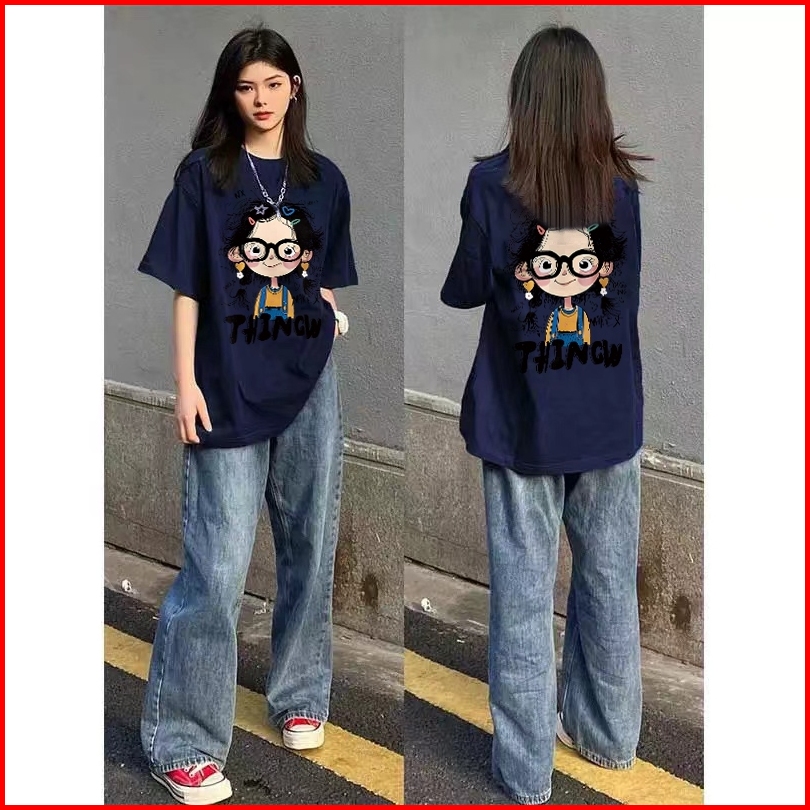 Forteid Biru Laut T-shirt Lengan Pendek Baju Kaos Oversize Wanita Baju Kaus Wanita Korea Baju Atasan Wanita Terbaru Ceta