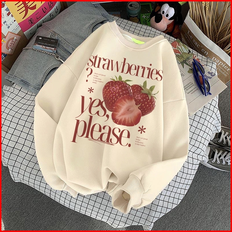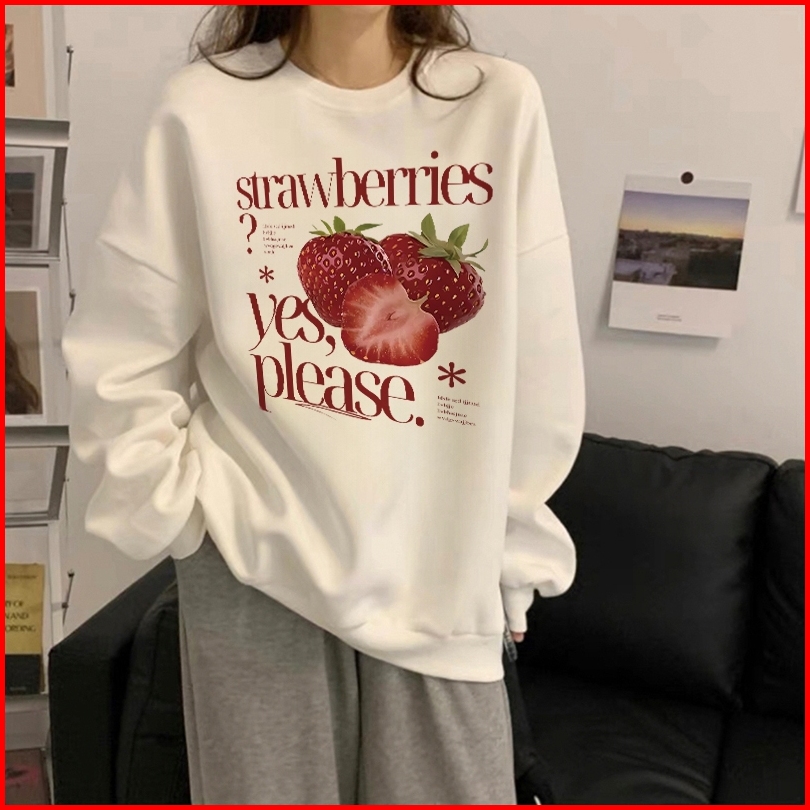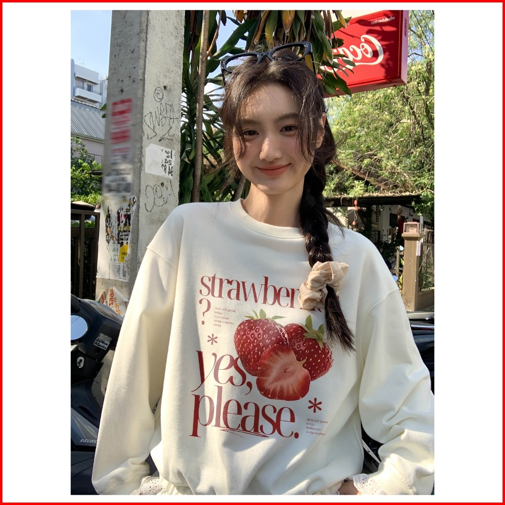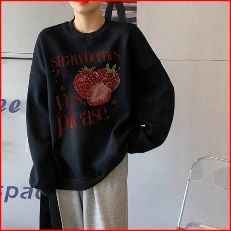 Forteid Sweater Lengan Panjang Oversized Street Style Korean Style Switer Wanita Oversize Kaos Cetakan Strawberry Letter