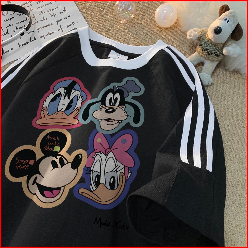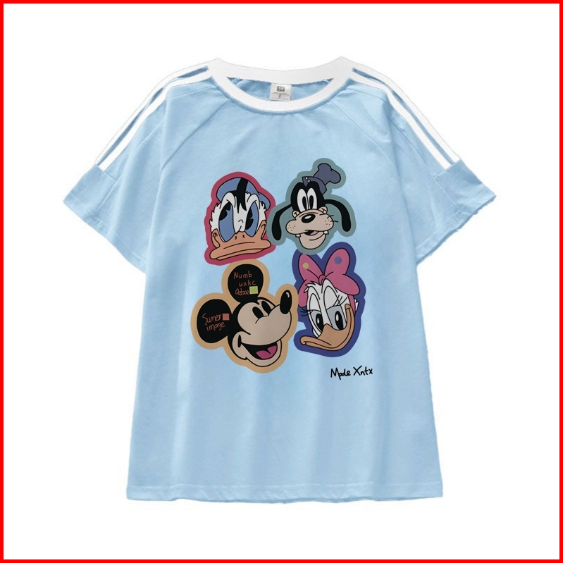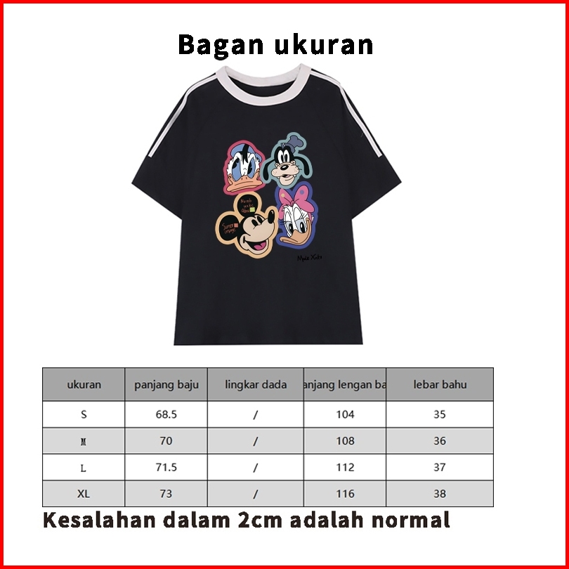 Forteid Cetakan Merek Trendi Retro Baju Oversize Bergaris Bahu Korean Style Kaos Longgar
