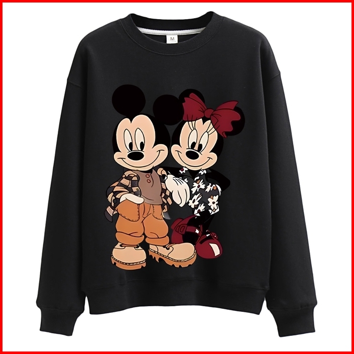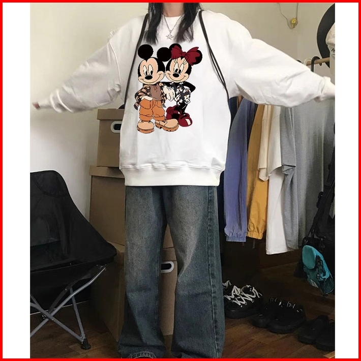 Forteid Sweater Lengan Panjang Oversized Street Style Korean Style Switer Wanita Oversize Cetakan Mickey Mouse Korean St