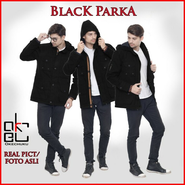Jaket Parka Black Okechuku Baby Kanvas Jacket Distro Pria Motor