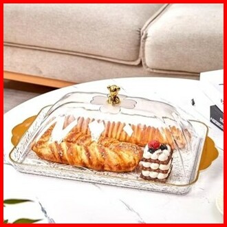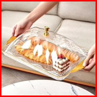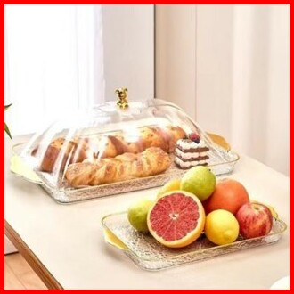 Wadah Food Tray Nampan Saji Transparan Aesthetic Dengan Tutup Wadah Buah Dan Roti