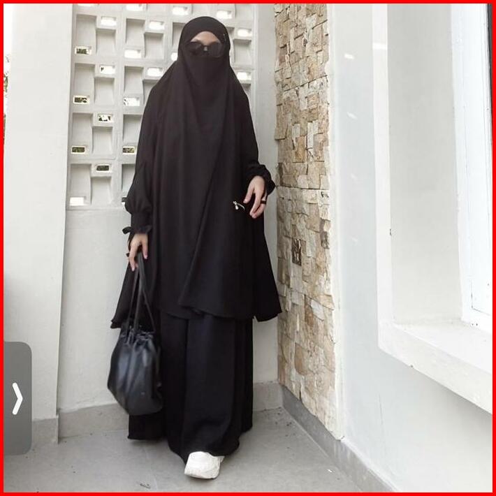 Terbaru Inara One Set Crinkle Airflow Syari Set Frenchkhimar Dan Rok Keknian Melar Karet Baju Gamis Celana Muslim Panjan