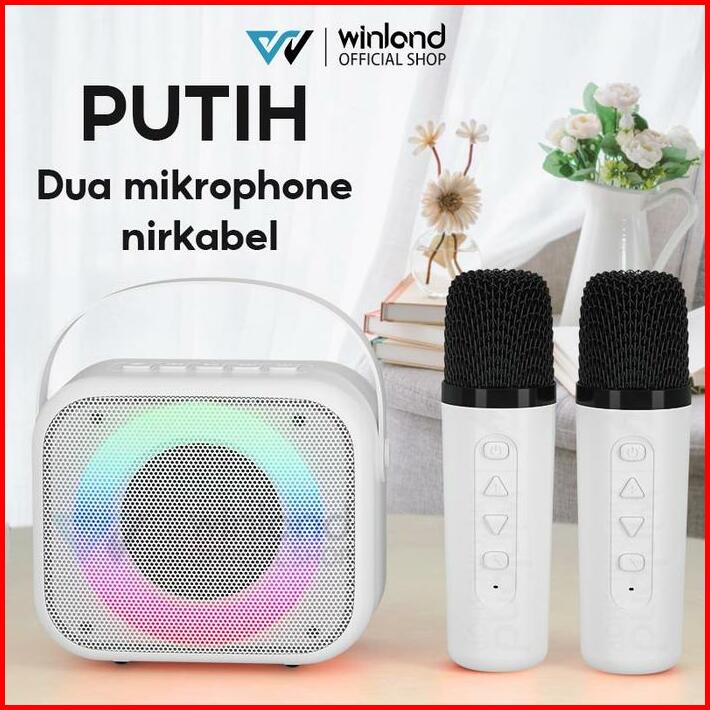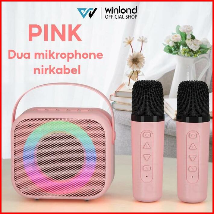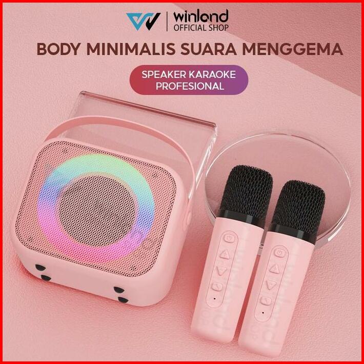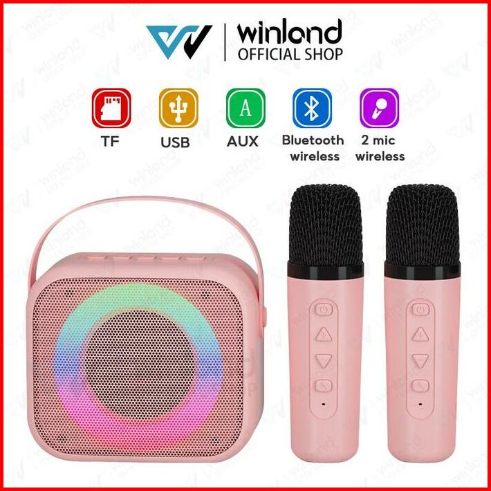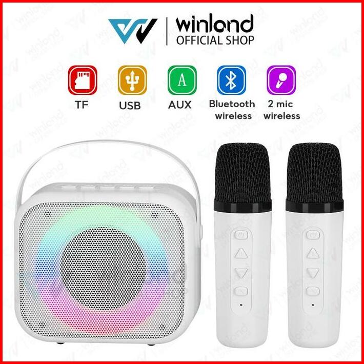Winland Speaker Karaoke Bluetooth Mini Full Bass Portable Wireless 2 Mic Dapat Terhubung Ke Hp Tv