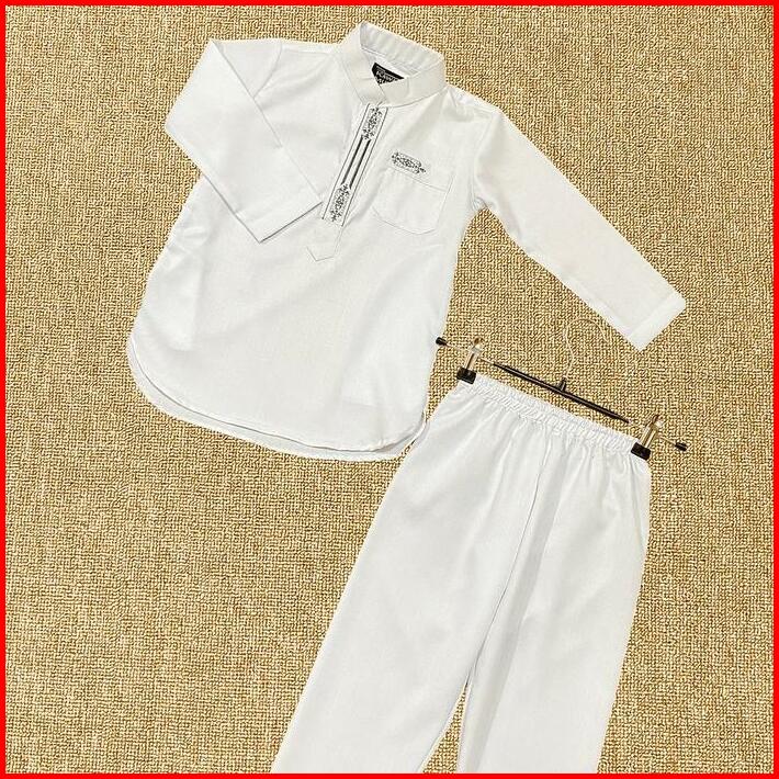 Kawan Muslim-koko Setelan Anak Cowok Laki-laki Full Bordir Bahan Adem Toyobo Premium Lengan Panjang Putih Terbaru