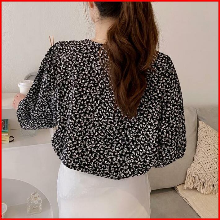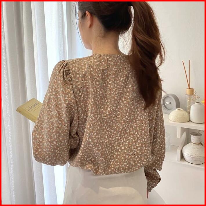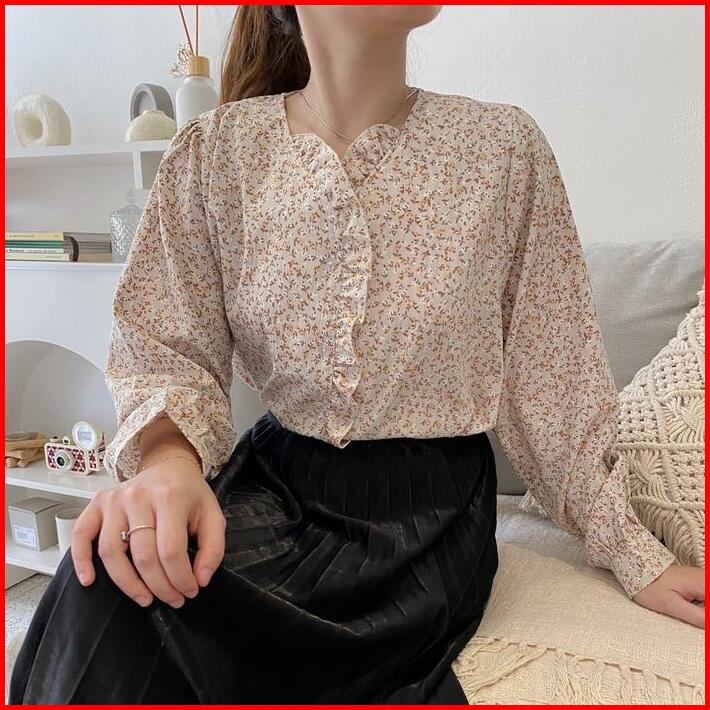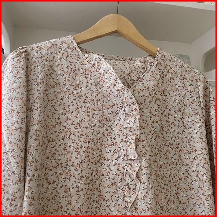Floral Shirt Kemeja Wanita Korean Style Atasan Motif Bunga Lucu