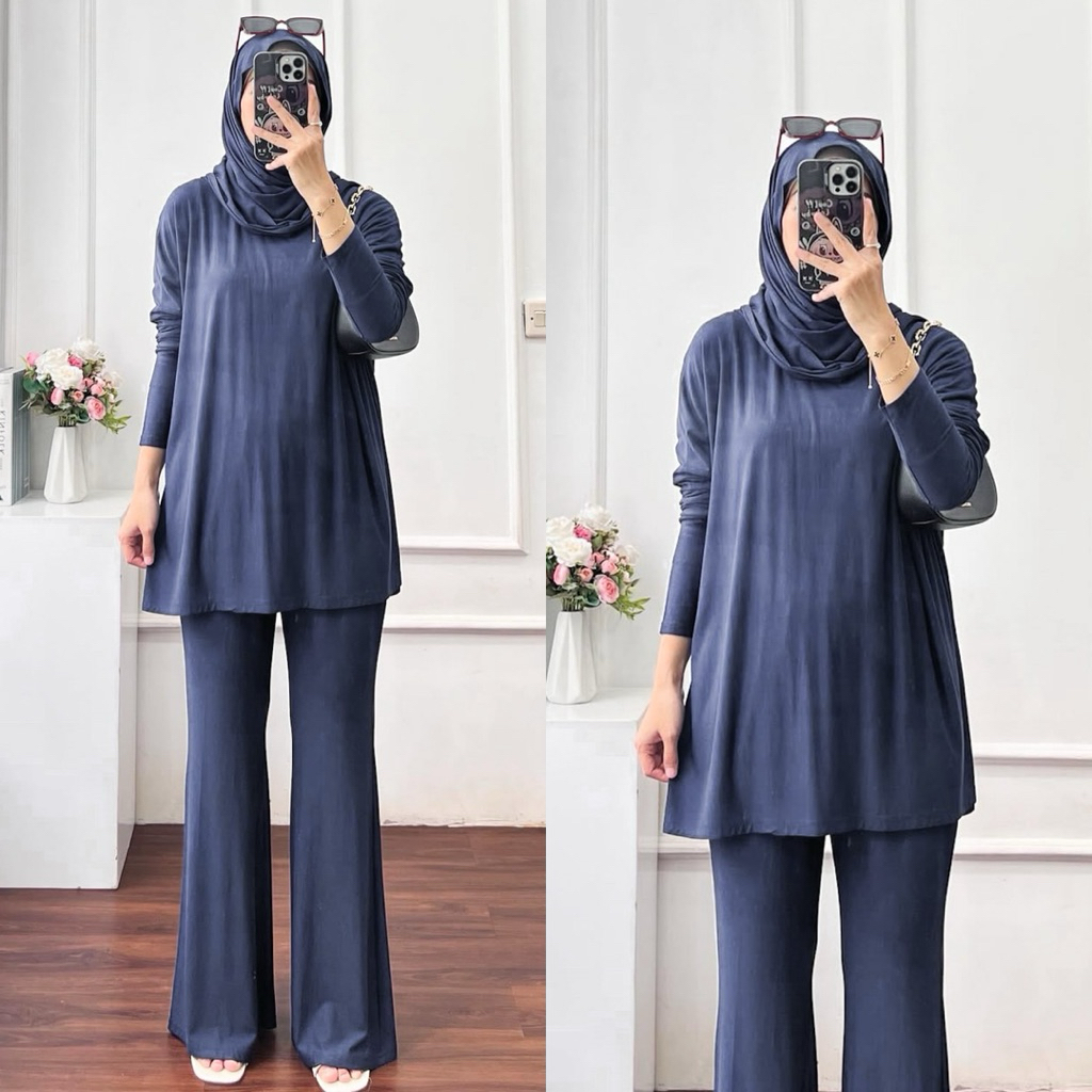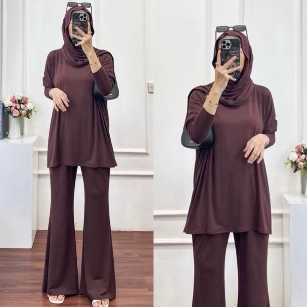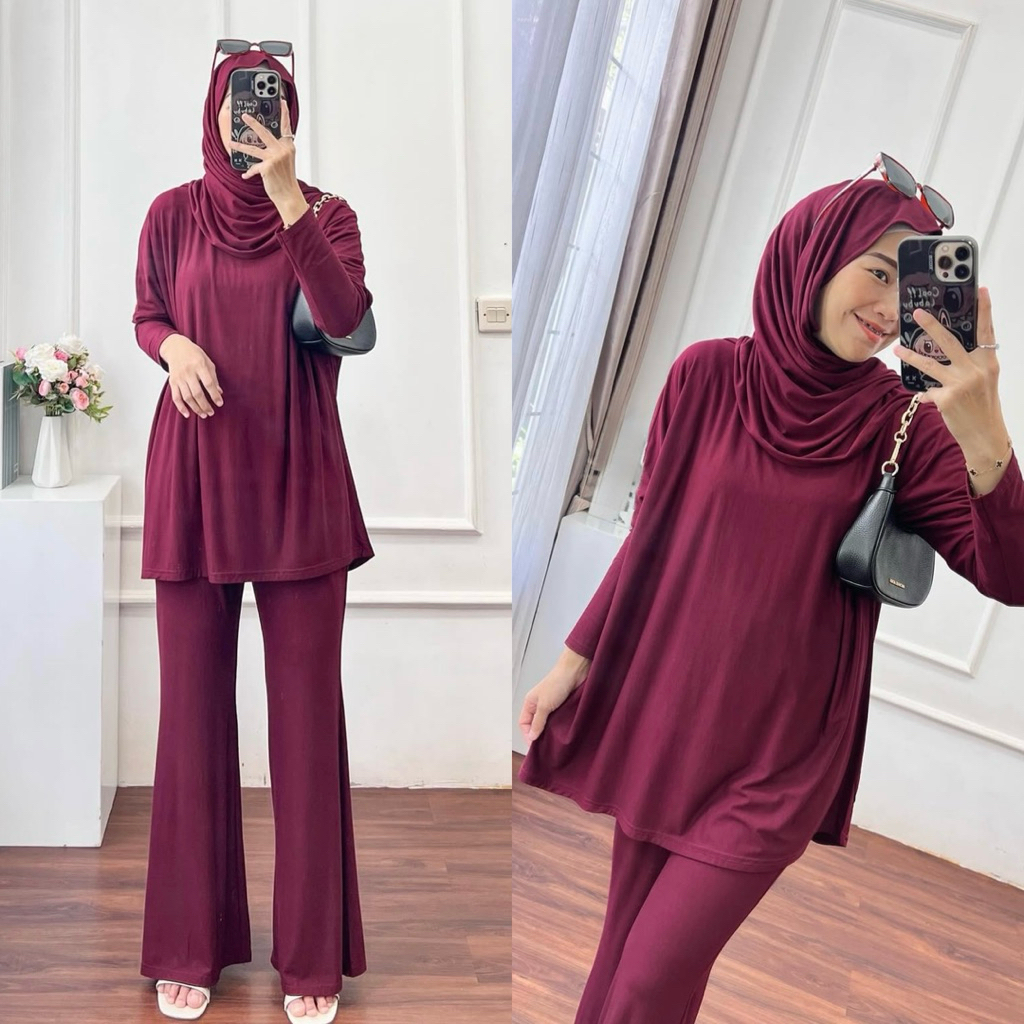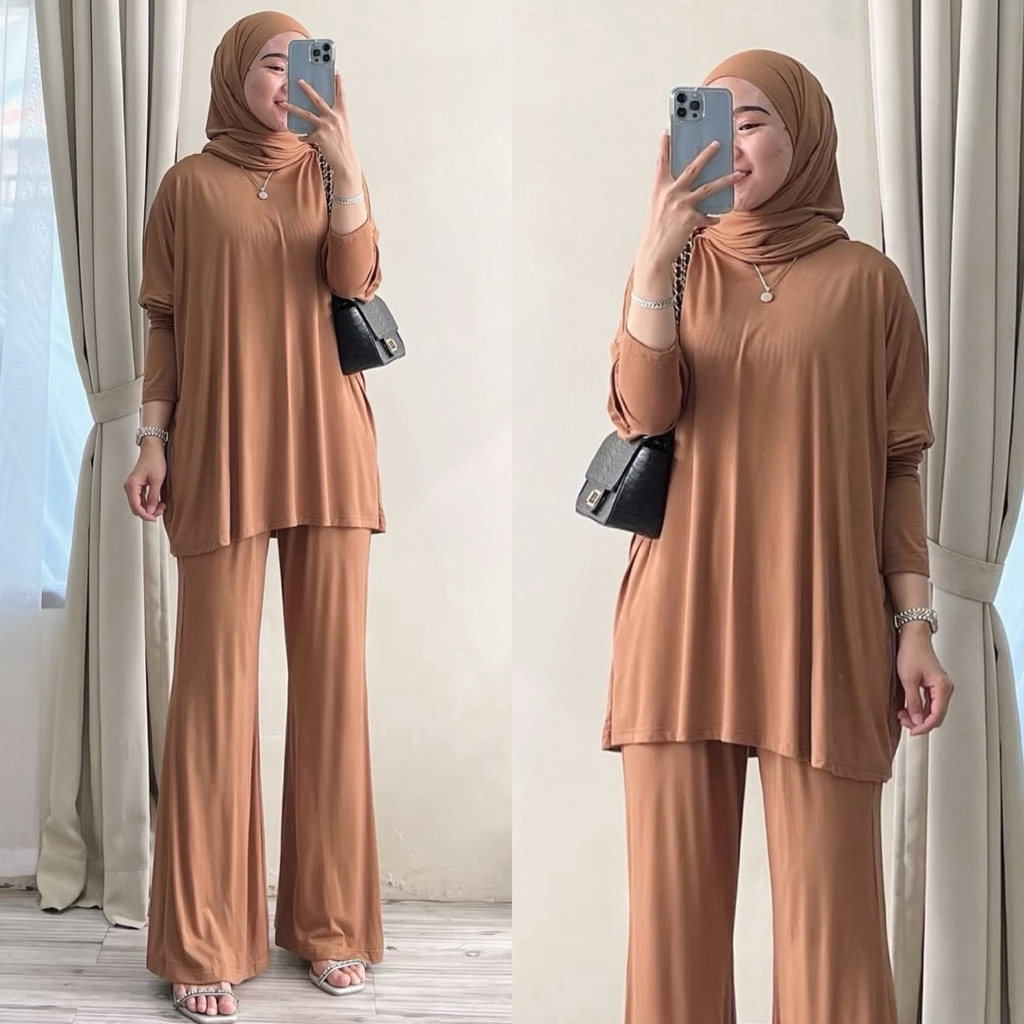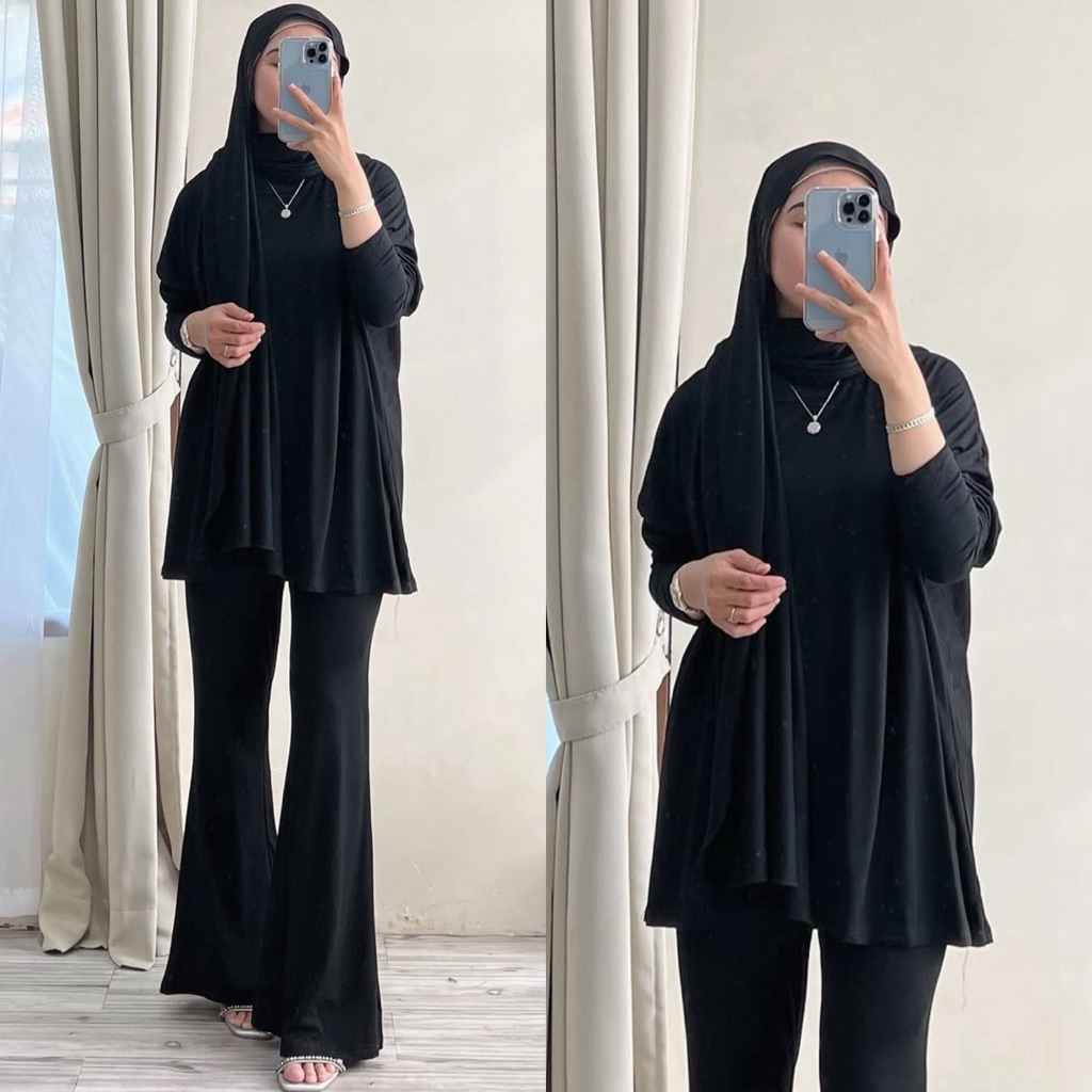 Everly Set Cutbray Free Hijab Pashmina/Setelan Celana dan Hijab Muslim/Basic Daily Set/Celana Panjang Cut Bray/Atasan Wanita Oversize