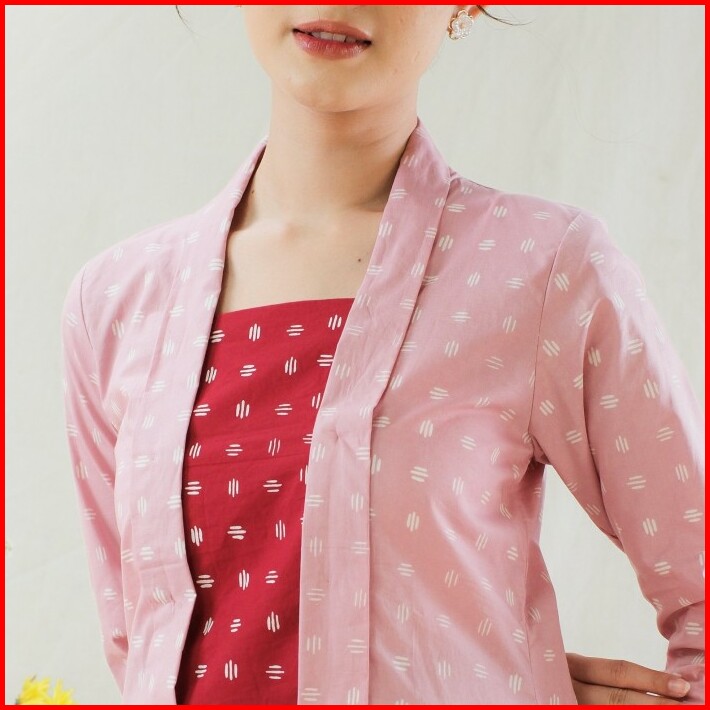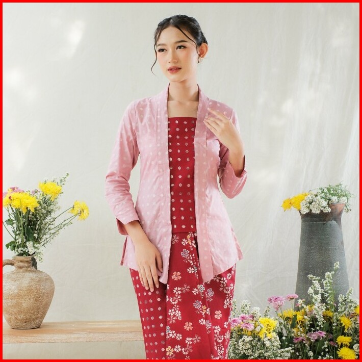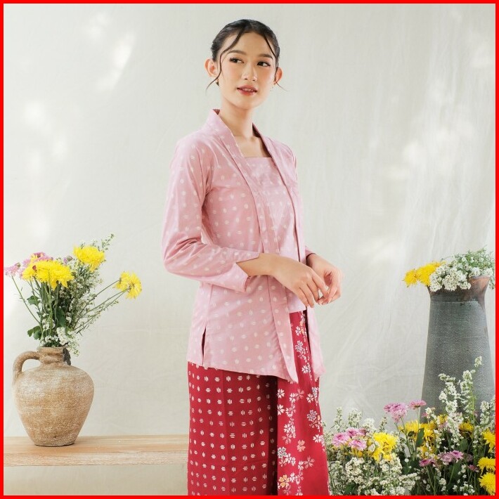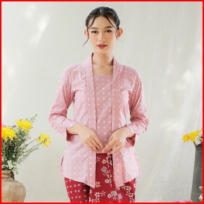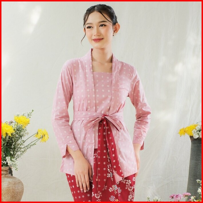 Kebaya Kutubaru Etnik Batik Kayana Lengan Panjang Meradelima Katun Dusty Pink