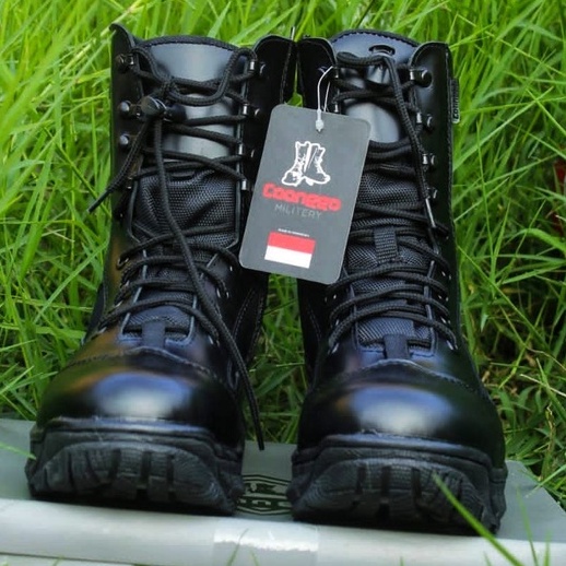 Sepatu PDL Jatah Polri TNI Kulit Asli Original CAANGGO Militery Hitam Tinggi 10 Inc Anti Slip