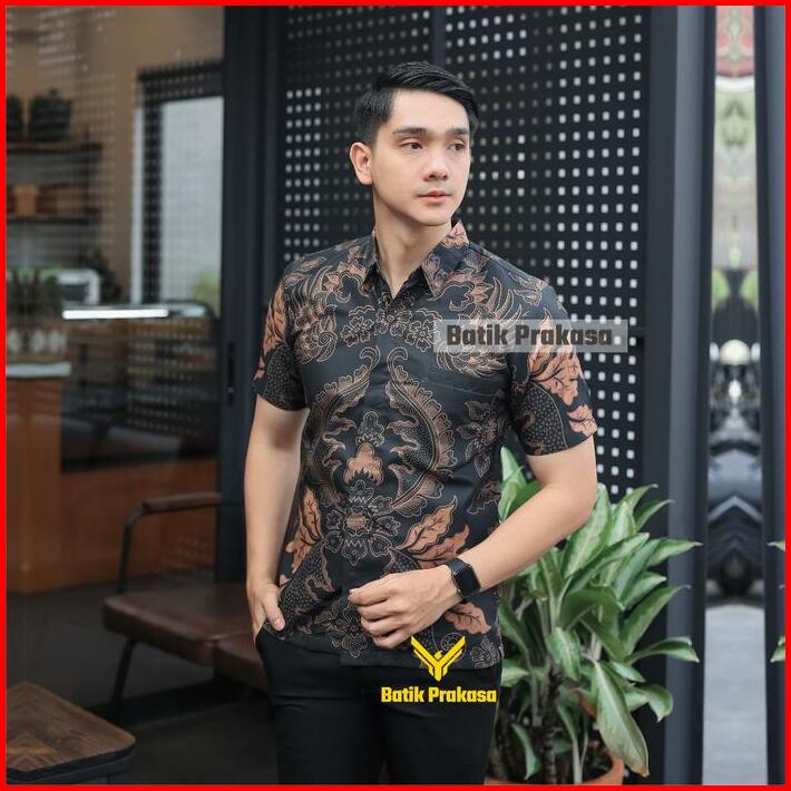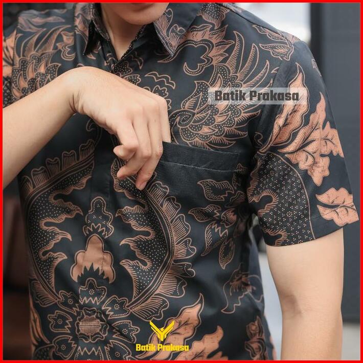 Kemeja Batik Pria Prakasa Motif Bhadrika Slimfit Lengan Pendek Batik Solo Baju Katun Nyaman