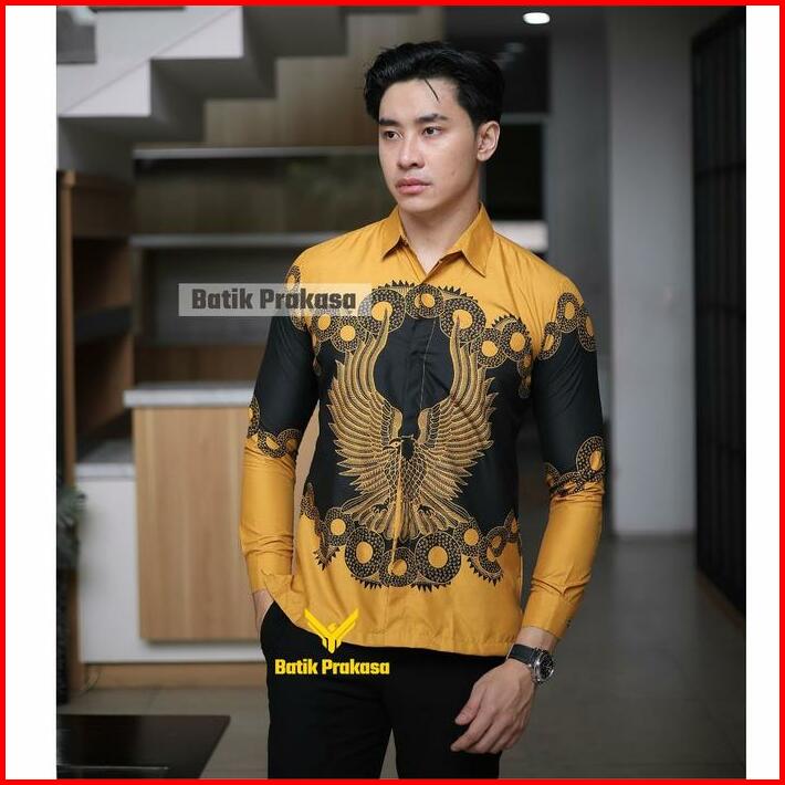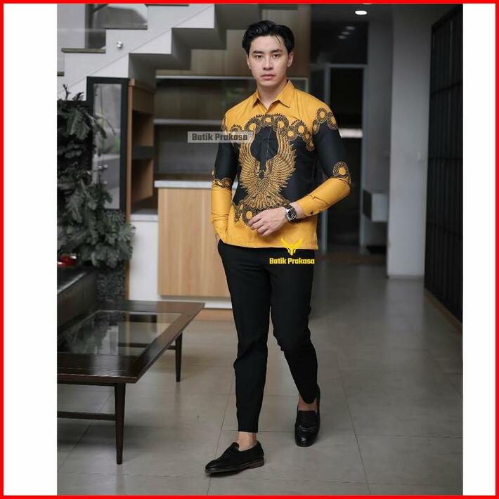 Beli Lokal Kemeja Batik Prakasa Motif Prabhu Arjuna Slimfit Lengan Panjang Batik Solo Baju Katun Nyaman