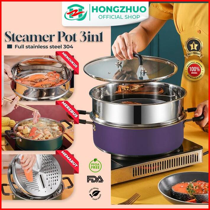 Beli Lokal Hongzhuo Cooking Hot Pot Panci Steamer Panci Steamer Pengukus Dengan Parutan