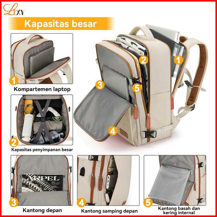 Lexy Tas Ransel Pergi Wanita Multifungsi Tahan Air Backpack Dengan Tas Sepatu Terpisah35l 16 Inch