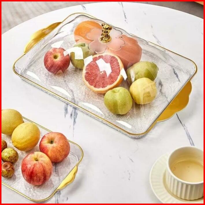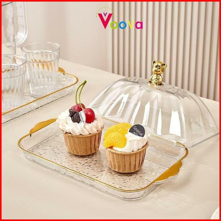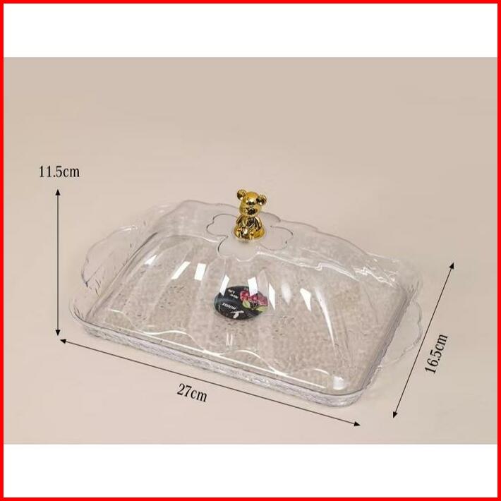 Nampan Serbaguna Bening Bear Drag Tray With Lid Nampan Snack Tray Nampan Buah Piring Dessert 27 33 36 Cm